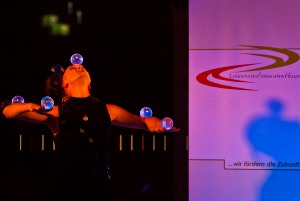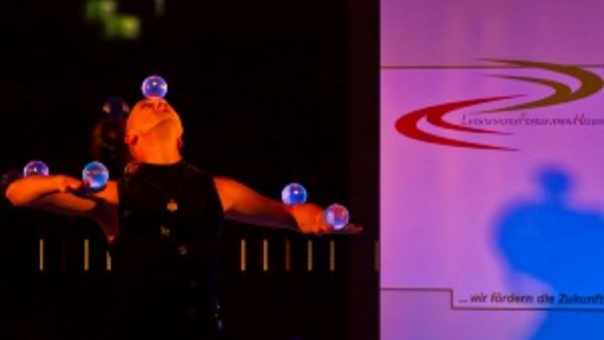 Im Rahmenprogramm trat der Kontaktjongleur Kelvin Kalvus auf, begeisterte die Gäste und sorgte für magische Momente. Kalvus war vor drei Jahren Finalteilnehmer in der RTL-Show „Das Supertalent“. Im Mittelpunkt standen jedoch die erfolgreichen hessischen Leichtathletinnen und Leichtathleten, die mit Präsenten und Förderpreisen bedacht wurden. Überreicht auch von Edgar Itt, dem ehemaligen Topläufer über 400 Meter Hürden. Übergeben worden sind auch Bilder des Künstlers Udo Kneffel. Vom LFH als Trainer des Jahres ausgezeichnet wurde Wolfgang Heinig, er zeichnet für die Betreuung von Gesa Krause verantwortlich. Erfolgreichster Trainer im Nachwuchsbereich im Jahr 2011 ist Carlos Gambetta, Vater der U20-Vize-Europameisterin im Siebenkampf, Sara Gambetta. Geehrt für ihr Lebenswerk wurde Trainerin Erika Platner vom TV Michelbach. Nicht zuletzt gab es zwei Abschiede offiziell zu machen: Andrea Bunjes, viele Jahre in der deutschen Spitzenklasse der Hammerwerferinnen vertreten, hat bekanntlich ihre Karriere beendet; Sprinter Till Helmke wechselt von der LG Ovag Friedberg-Fauerbach zum TSV Bayer Leverkusen und wurde von Thomas Seybold mit dem HLV-Ehrenpreis 2011 ausgezeichnet.