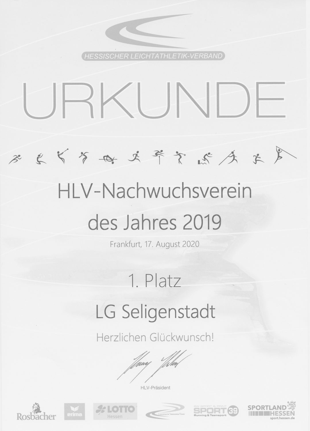 Die LG Seligenstadt hat sich wieder beim Hessischen Leichtathletik-Verband zur Kür des Nachwuchsverein des Jahres 2019 beworben und gewonnen!