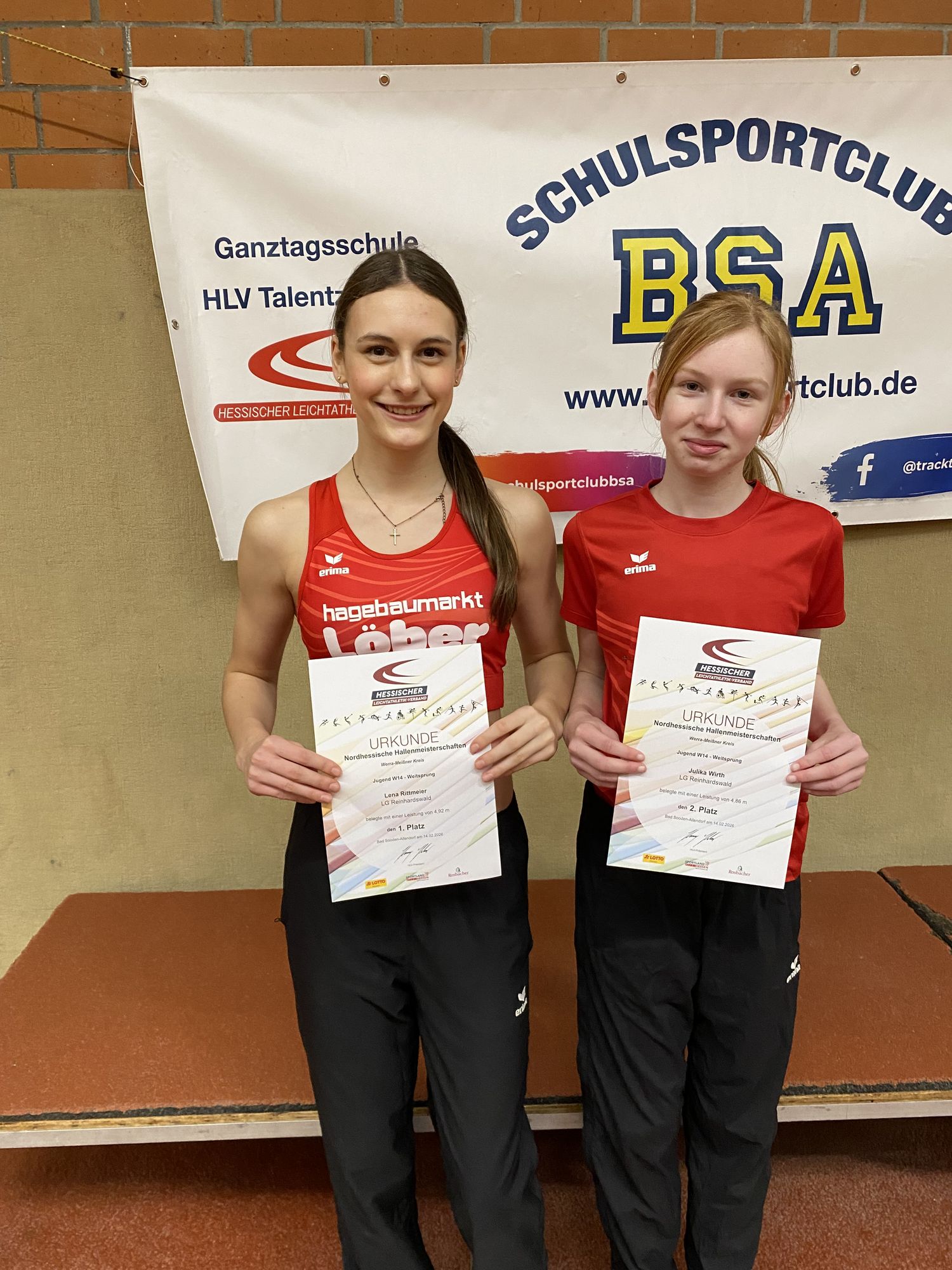 In der weiblichen Jugend W14 stellte 800-Meter-Ass Julika Wirth (TSG Hofgeismar) im 60-Meter-Sprint eine beeindruckende Verbesserung ihrer Grundschnelligkeit unter Beweis. Sie war in 8,46 Sekunden mehr als eine halbe Sekunde schneller als im letzten Jahr. Damit holte die noch der W13 angehörende Athletin mit drei Hundertstelsekunden Vorsprung den Titel vor Lena Rittmeier (SV Espenau). Im Weitsprung tauschten Wirth und Rittmeier die Plätze auf dem Podest. In einer ebenfalls knappen Entscheidung hatte Rittmeier mit 4,92 Metern gegenüber 4,86 Metern von Wirth das bessere Ende für sich.