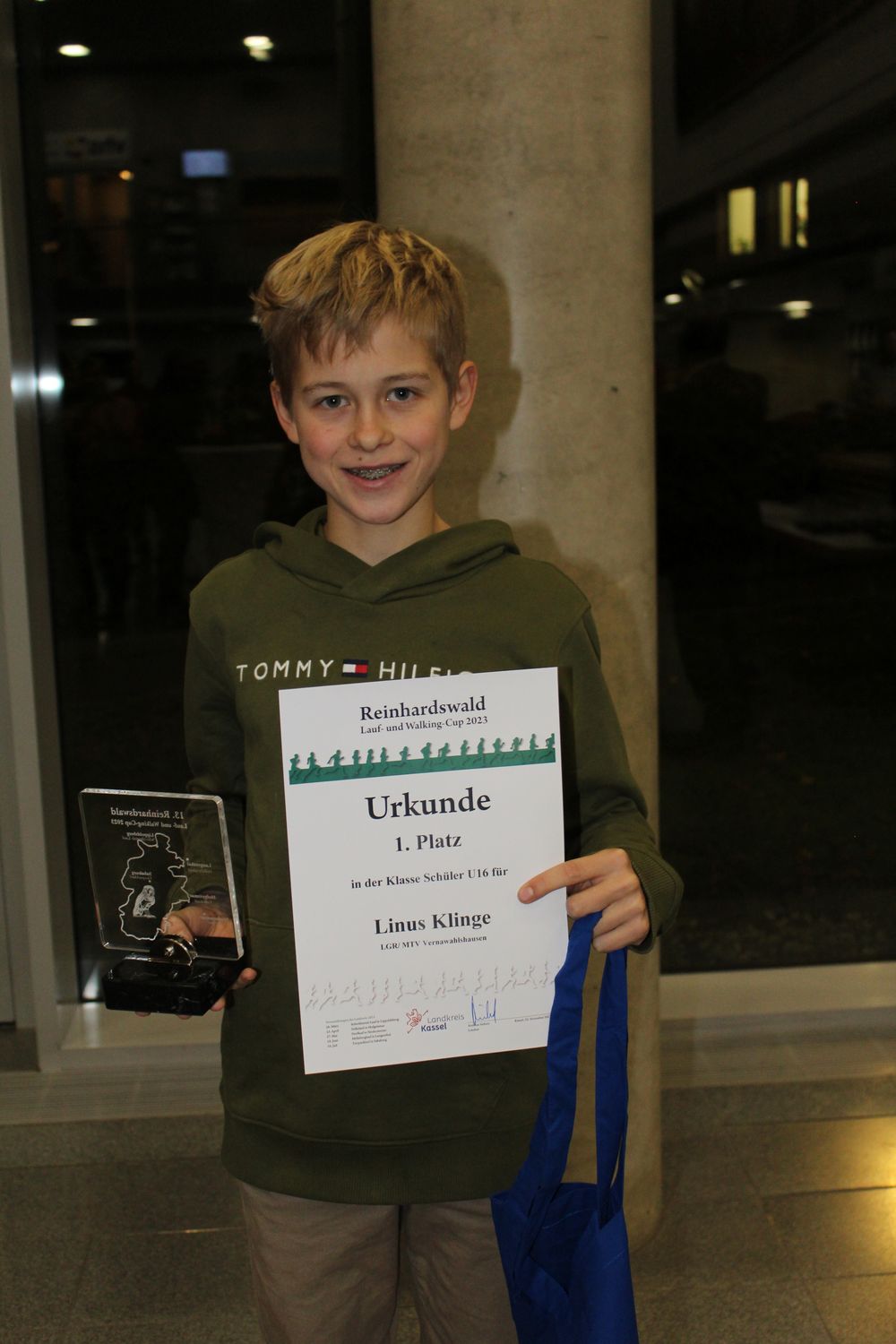 Die Altersklassen der Youngster dominierte die LG Reinhardswald. Familienerfolg für den MTV Vernawahlshausen durch die Brüder Linus (U16) und Mats Klinge (U10). Lotte Thiemann (TSV Udenhauen; U10), Lotte Sprecher (SST Liebenau; U12), Levi Schlesinger (TSG Hofgeismar, U12), Emma Bönning (TSV Lippoldsberg; U14) und Johnny Bick (SV Trendelburg; U14) stockten die Ausbeute auf sieben Pokale für den Nachwuchs der Startgemeinschaft auf.