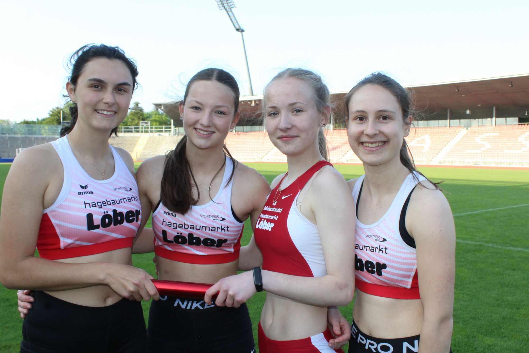 Die weibliche Jugend U20 mit Linea Zilke, Alice Ekenberger (beide VfL Wolfhagen), Irina Uliyanova (TSG Hofgeismar) und Lina Henrici (TSV Lippoldsberg) setzte sich im 4x100-Meter-Staffellauf in 53,11 Sekunden gegen die Stargemeinschaft Frankenberg/Korbach mit 37 Hundertstelsekunden Vorsprung durch.