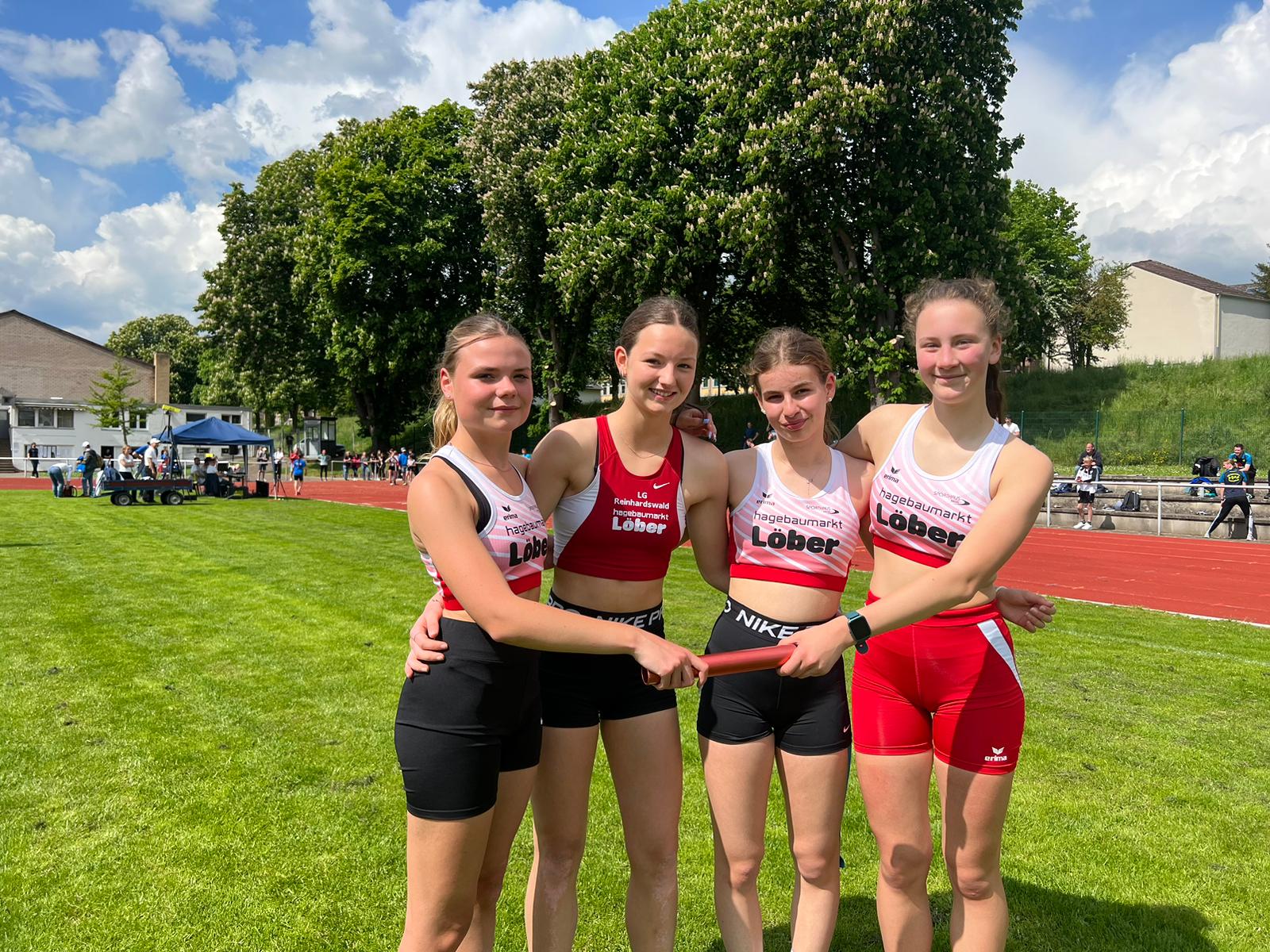 In 54,32 Sekunden sprinteten Jolina Schmidt, Lina Henrici (TSV Lippoldsberg), Milena Greiner (SV Espenau) und Charlotte Lefebvre (TSG Hofgeismar) mit sieben Zehntelsekunden Vorsprung zum deutlichen Sieg vor den Mitfavoritinnen der Startgemeinschaft Nordhessen. Der Titel mit Athletinnen aus vier verschieden Stammvereinen ist auch Beleg des erfolgreichen Konzepts der LG Reinhardswald die Talente des Kreises zu starken Staffeln und Mannschaften zusammenzuführen. Jetzt blicken die Athletinnen optimistisch auf die nächste Herausforderung bei den Hessischen Staffelmeisterschaften am Donnerstag in Bürstadt.