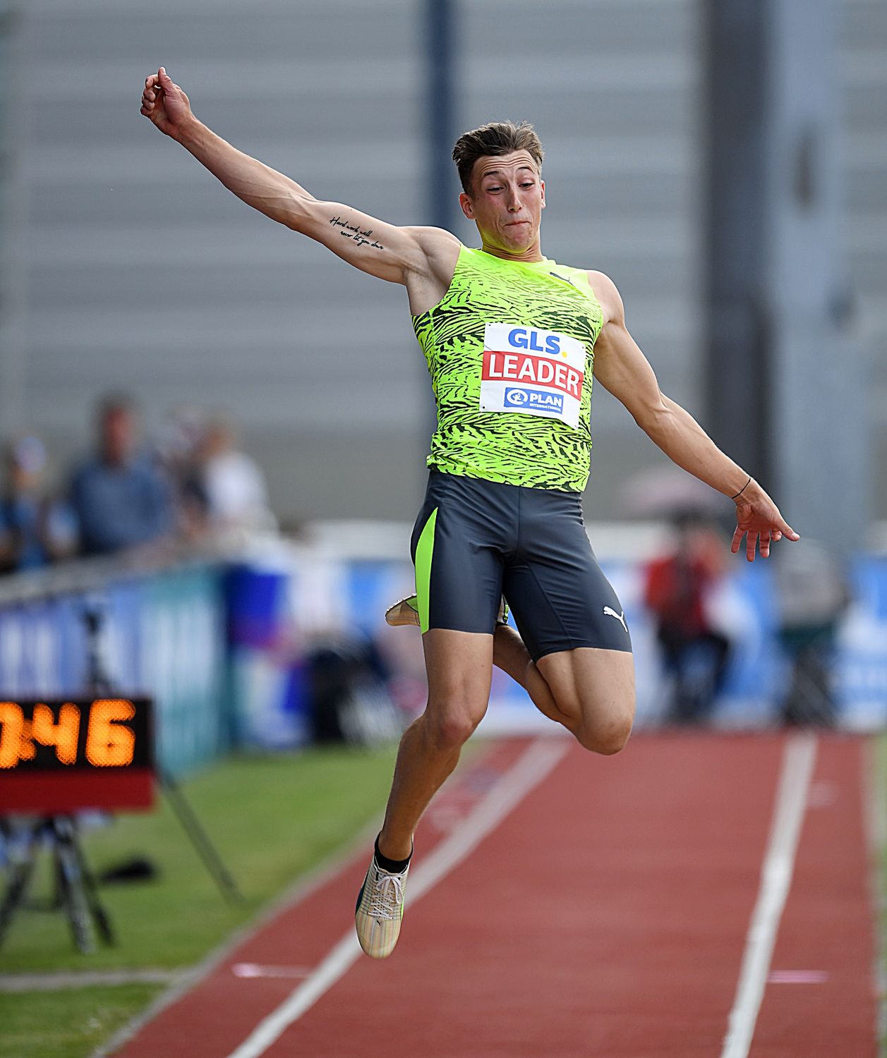 In anderen Dimensionen bewegte sich dagegen Simon Ehammer. Der junge Schweizer hat nach dem ersten Tag satte 4583 Zähler auf seinem Konto und führt damit das Feld mit über 250 Punkten Vorsprung souverän an. Mit 10,65 Sekunden zauberte Simon gleich einmal die schnellste Zeit des Tages auf den Tartanbelag. Gleich mit seinem ersten Satz beim Weitsprung leuchteten 7,69 Meter auf der Anzeigetafel auf. Aber es sollte noch besser kommen. In der zweiten Runden fehlten mit 7,97 Metern lediglich drei winzige Zentimeter zu einer „Achter-Weite“. Die war dann im letzten Durchgang fällig. Der 22-Jährige flog unter dem Jubel der Zuschauer auf unglaubliche 8,30 Meter! Mit dieser internationalen Top-Weite, kein deutscher Weitsprung-Spezialist kam 2021 in den Bereich dieser Marke, stellte Ehammer einen neue „Zehnkampf-Weltbestleistung“ auf. Die hielt bis dahin Olympiasieger Damian Warner (CAN/8,28 m). Zudem bedeutete diese Marke einen neuen Meeting-Rekord sowie Schweizer Landesrekord. Beim Flash-Interview mit dem Stadionsprecher verriet Simon, dass der Sprung gut war, jedoch die Landung nicht optimal war und auch beim Absprung noch einige Zentimeter verschenkt wurden.