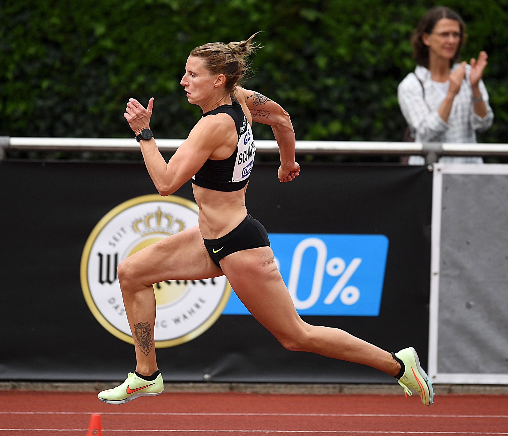 Im Kugelstoßen landete Schäfers erster Versuch rechts knapp außerhalb des Sektors. In der zweiten Runde passte es dann. Mit guten 13,98 Metern kratzte die Polizei-Kommissarin an der Vierzehner-Marke. Nur die US-Amerikanerin Shania Burns war in dieser Disziplin besser. Ihr bester Versuch mit der vier Kilogramm schweren Kugel wurde bei starken 14,70 Metern gemessen - neue PB!