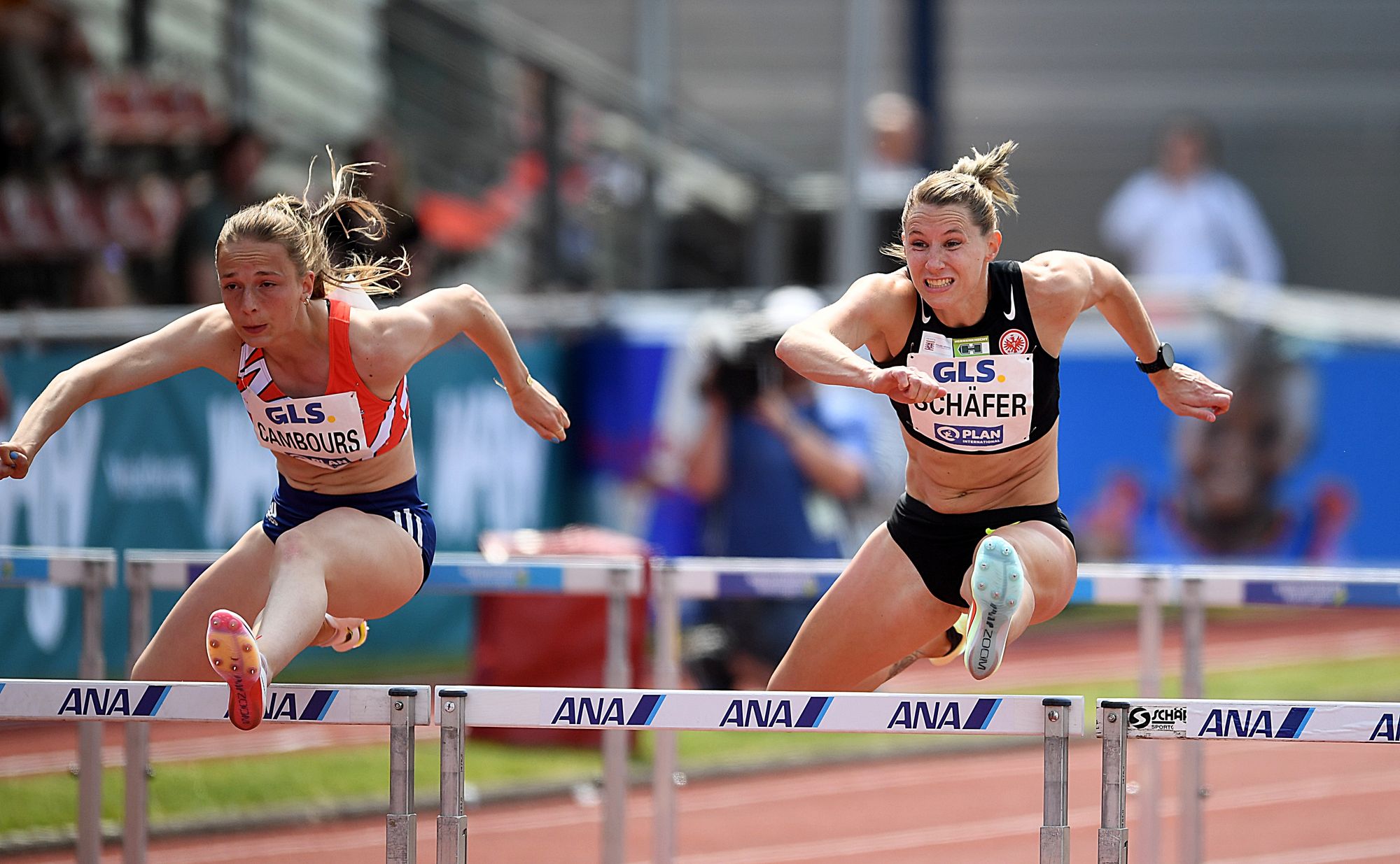 Schäfer legte bei leichtem Gegenwind (-0,9 m/sec.) mit 13,57 Sekunden über 100 Meter Hürden los. Damit stürmte sie ganz knapp vor Leonie Cambours (13,58 sec.) ins Ziel und durfte beim folgenden Hochsprung die Startnummer mit dem Aufdruck „Leader“ tragen. Hier musste die Olympia-Siebte von Tokio mit überquerten 1,71 Metern zufrieden sein. Also noch reichlich Luft bis zu ihrer Bestmarke, die bei 1,86 Metern notiert. Das beste Resultat des Tages ging mit 1,80 Metern an Leonie Cambours.