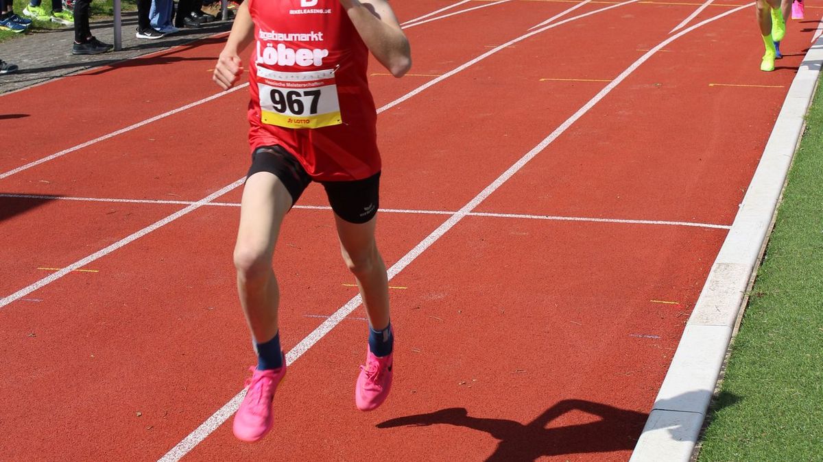 Hünfeld – Der neue Sponsor Bikeleasing-Service aus Uslar beflügelte: Linus Klinge (LG Reinhardswald/MTV Vernawahlshausen) gewann bei den Hessischen Langstrecken-Meisterschaften in Hünfeld über die 3000 Meter der M15 in 9:53,40 den Titel und stockte seine Sammlung nun auf fünf Landes-Titel seit 2022 auf. Bei kalter Witterung und auch windigen Bedingungen in der Rhönkampfbahn ist die Zeit nur ein erster Fingerzeig in der gerade begonnenen Stadion-Saison. Im Laufe des Jahres sollte ein Angriff auf den Kreisrekord (9:22,04) aus dem Jahr 2005 vom späteren Jugend-EM-Starter Wurie Bahn (SV Espenau) möglich sein. Dazu würden sich auf jeden Fall die Deutschen Meisterschaften am letzten Juli-Wochenende in Koblenz eignen. Die Quali-Zeit (9:55,00) wurde in Hünfeld schon abgehakt.