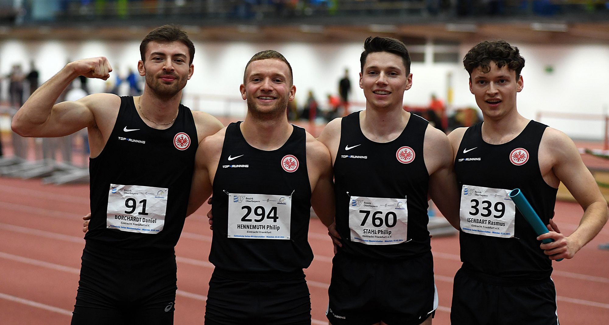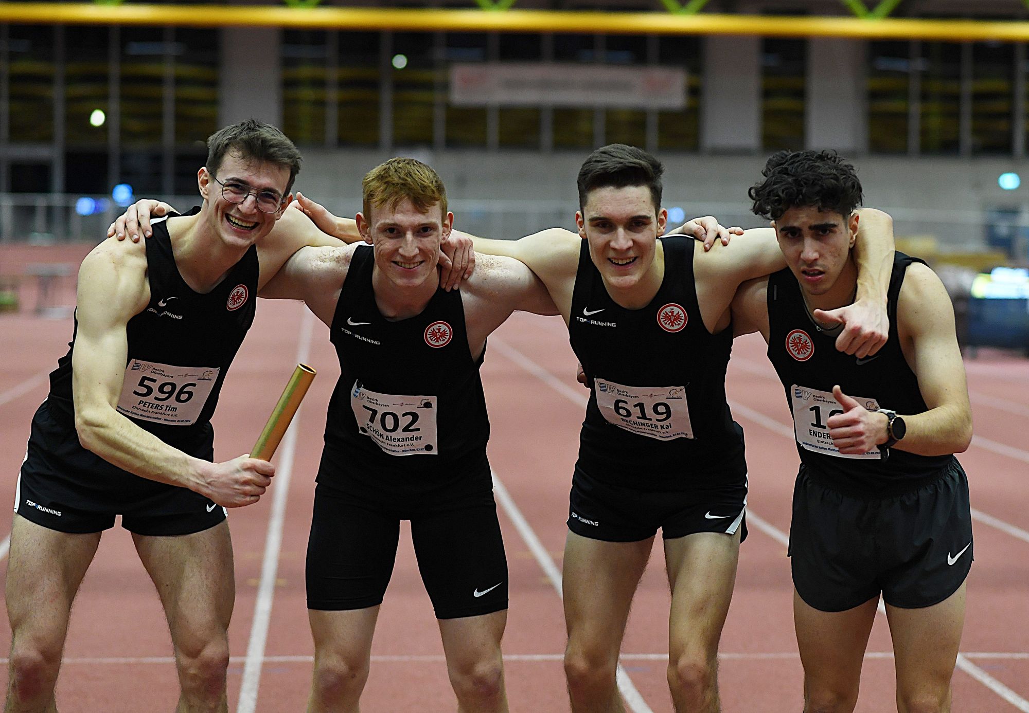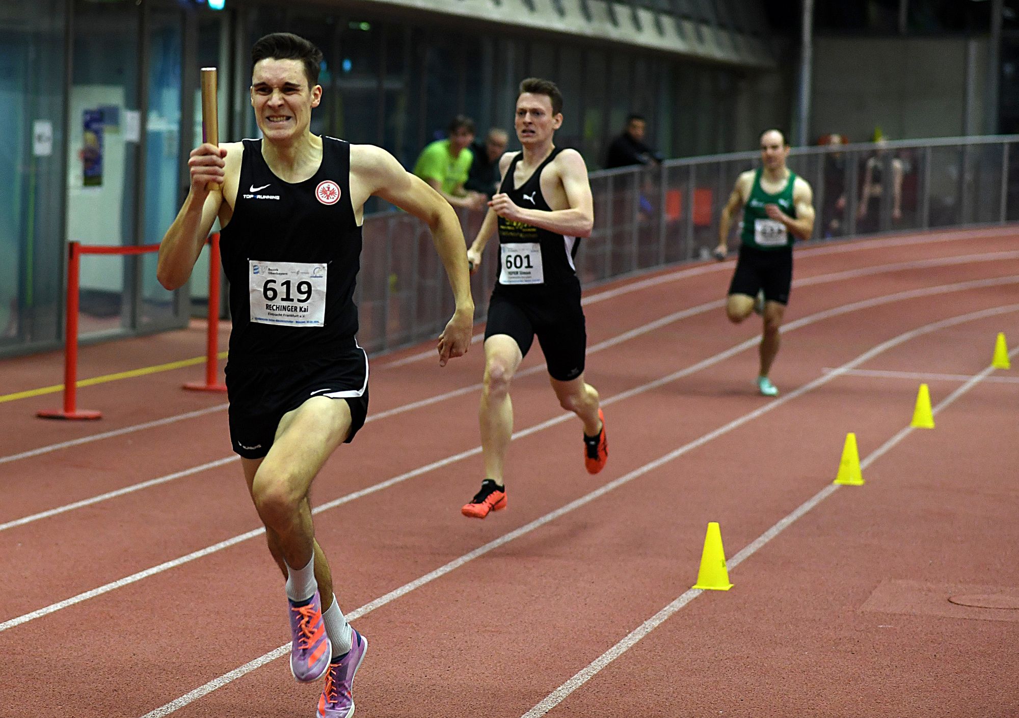Nach den 4x200 Metern standen gleich zwei hessische Teams auf dem Treppchen. Hinter der LG Region Karlsruhe (1:27,75 min.) konnte das Eintracht-Quartett (Daniel Borchardt, Philip Hennemuth, Philip Stahl, Rasmus Isenbart) Silber in Empfang nehmen. Für die Truppe der LG OVAG Fredberg-Fauerbach (Steven Müller, Lars Hieronymi, Manuel Christof, Tim Dillemuth) gab es nach 1:29,84 Minuten die Bronzemedaille. Bei den 4x400 Metern sahen die Zuschauer einen Heimsieg der LG Stadtwerke München (3:24,19 min.) vor der Startgemeinschaft Gomaringen/Pliezhausen (3:24,69 min.). Das Eintracht-Team (Tim Peters, Alexander Schön, Kai Rechinger, Yanik Can Enders) durfte nach 3:24,76 Minuten auf die dritte Stufe des „Stockerls“. Marc Tortell (Athletics Team Karben) machte als Schlussläufer über 3x1000 Meter seine zweite SDM-Medaille an diesem Wochenende klar. Zum Bronze-Trio (7:38,05 min.) gehörten noch Ayoub Jaafar sowie Nour Harouch. Im Dreisprung kann Sebastian Spinler (LG Seligenstadt) nach einen Satz auf 14,35 Meter (4.) mit dem DM-Start planen.