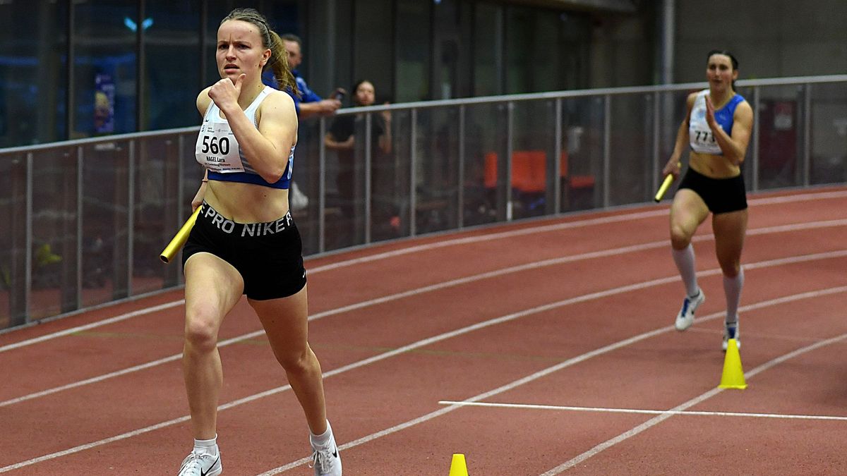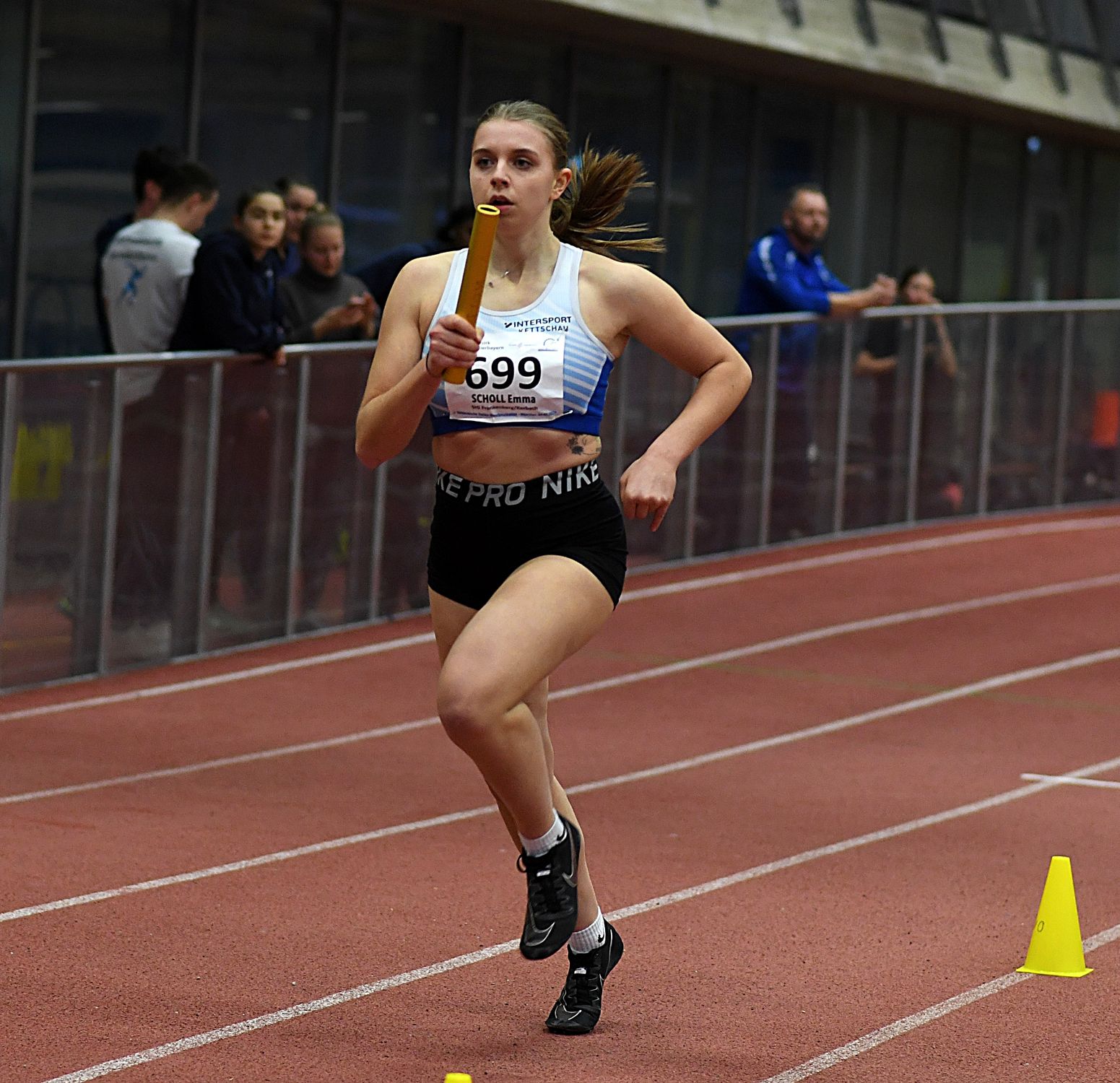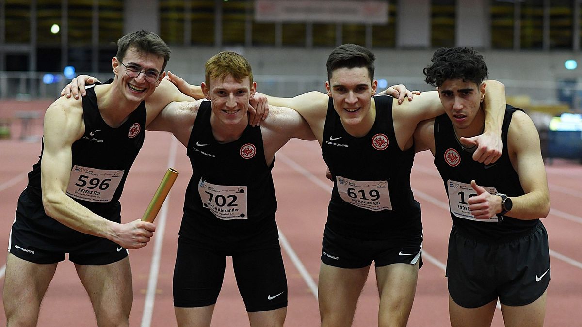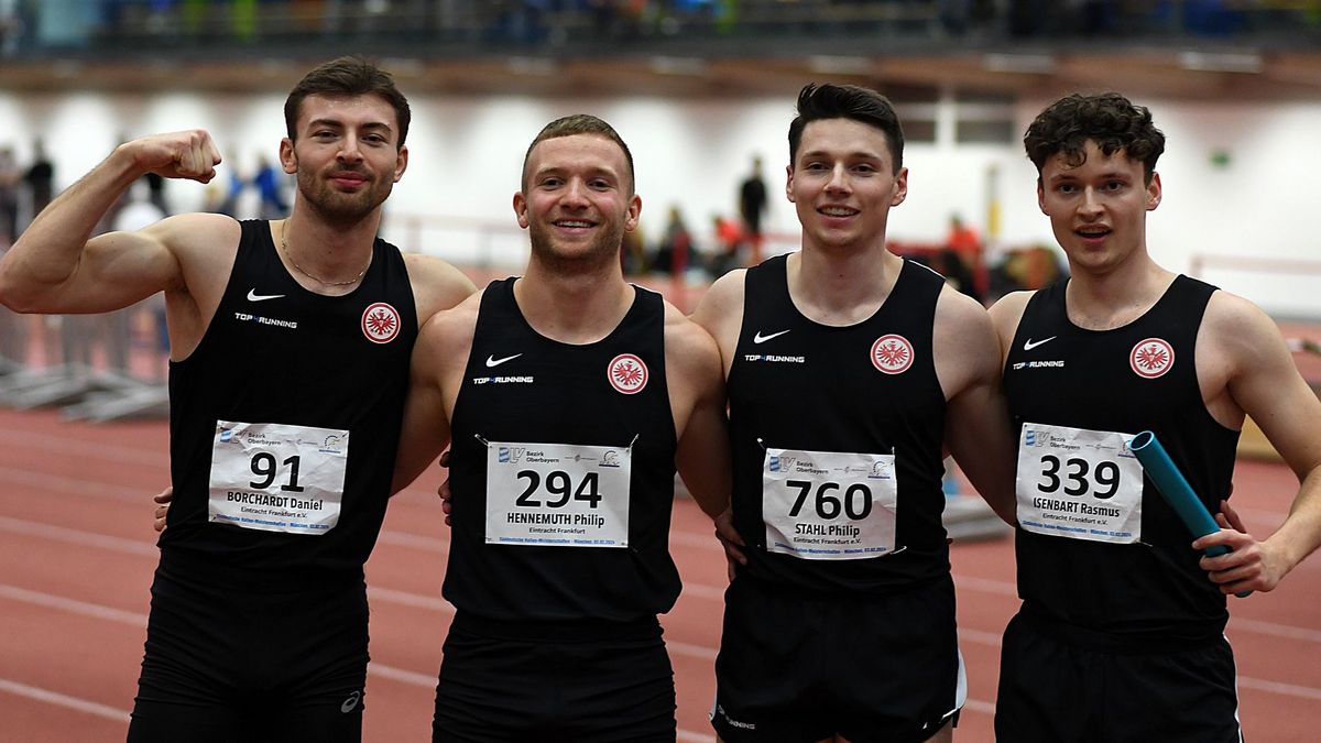 Nach den 4x200 Metern standen gleich zwei hessische Teams auf dem Treppchen. Hinter der LG Region Karlsruhe (1:27,75 min.) konnte das Eintracht-Quartett (Daniel Borchardt, Philip Hennemuth, Philip Stahl, Rasmus Isenbart) Silber in Empfang nehmen. Für die Truppe der LG OVAG Fredberg-Fauerbach (Steven Müller, Lars Hieronymi, Manuel Christof, Tim Dillemuth) gab es nach 1:29,84 Minuten die Bronzemedaille. Bei den 4x400 Metern sahen die Zuschauer einen Heimsieg der LG Stadtwerke München (3:24,19 min.) vor der Startgemeinschaft Gomaringen/Pliezhausen (3:24,69 min.). Das Eintracht-Team (Tim Peters, Alexander Schön, Kai Rechinger, Yanik Can Enders) durfte nach 3:24,76 Minuten auf die dritte Stufe des „Stockerls“. Marc Tortell (Athletics Team Karben) machte als Schlussläufer über 3x1000 Meter seine zweite SDM-Medaille an diesem Wochenende klar. Zum Bronze-Trio (7:38,05 min.) gehörten noch Ayoub Jaafar sowie Nour Harouch. Im Dreisprung kann Sebastian Spinler (LG Seligenstadt) nach einen Satz auf 14,35 Meter (4.) mit dem DM-Start planen.