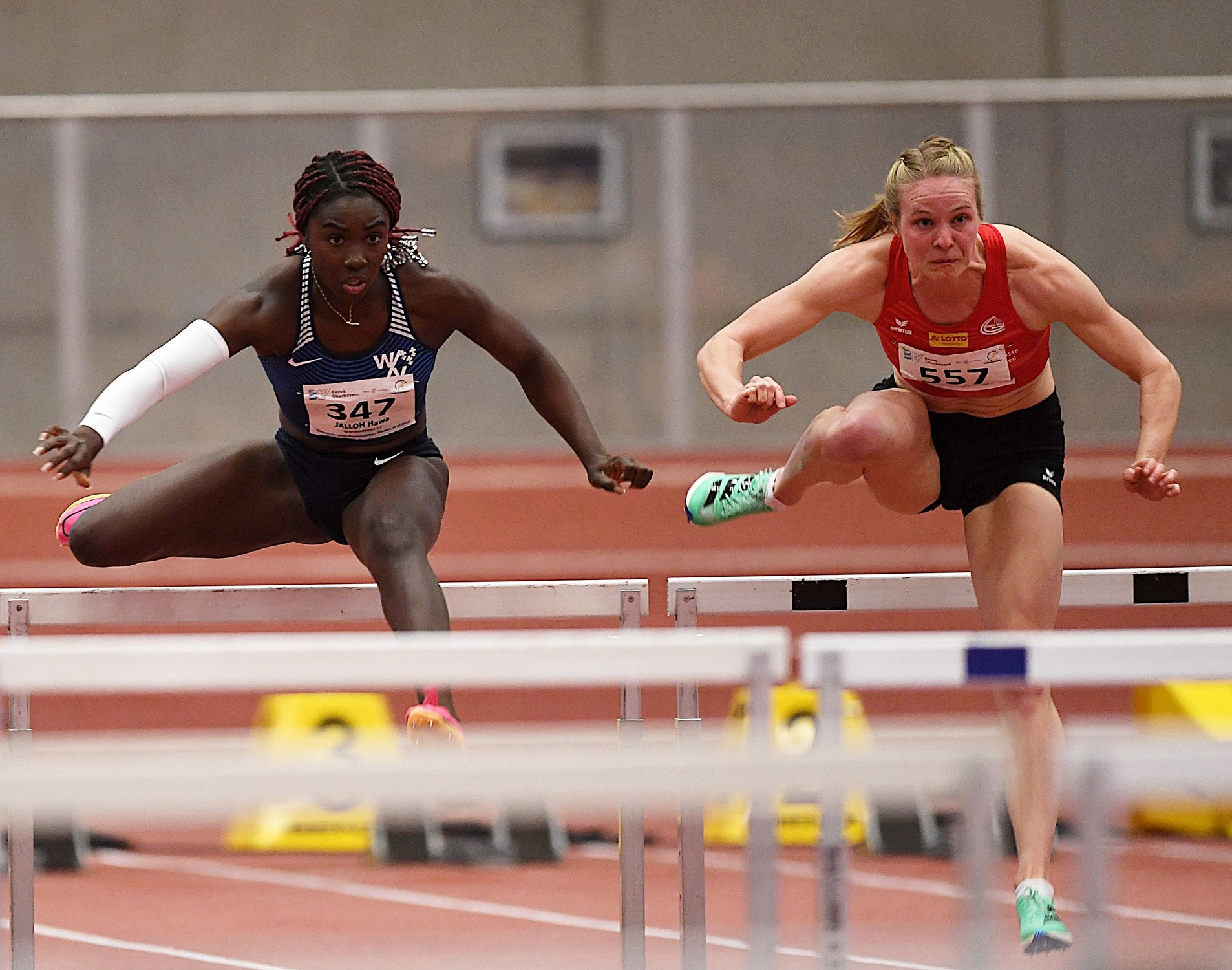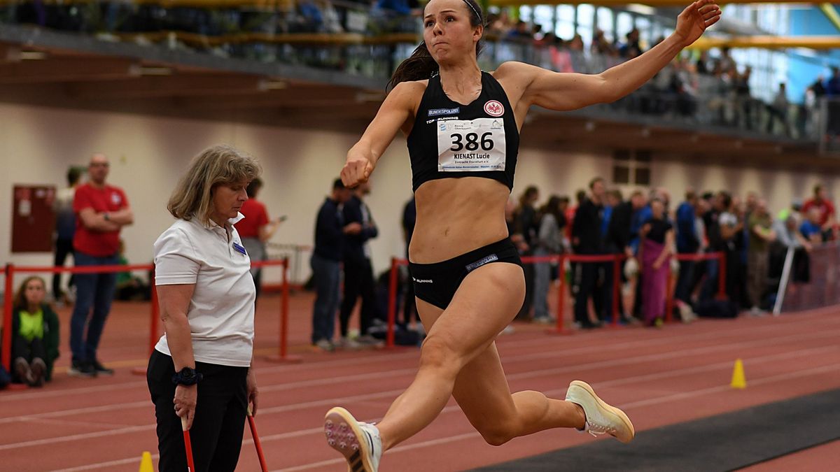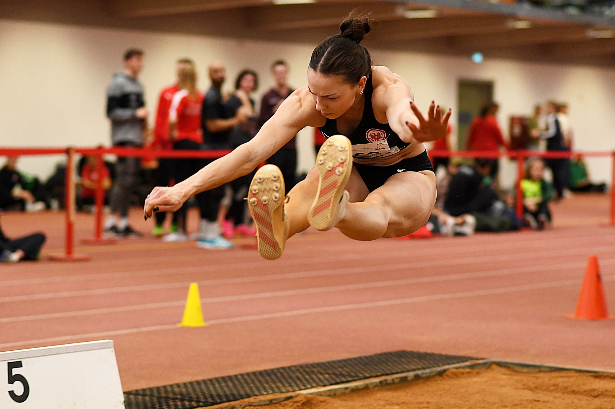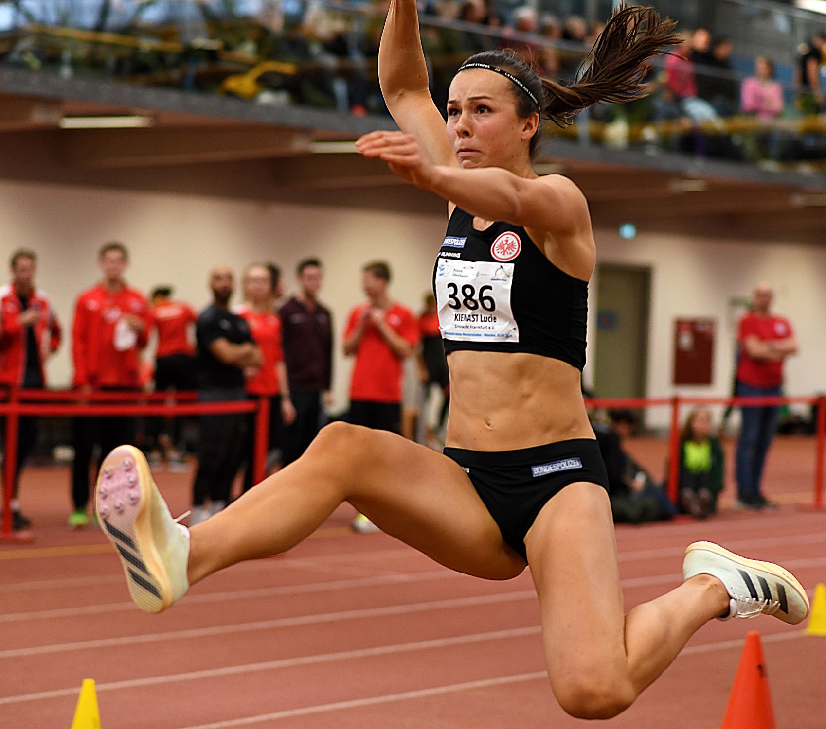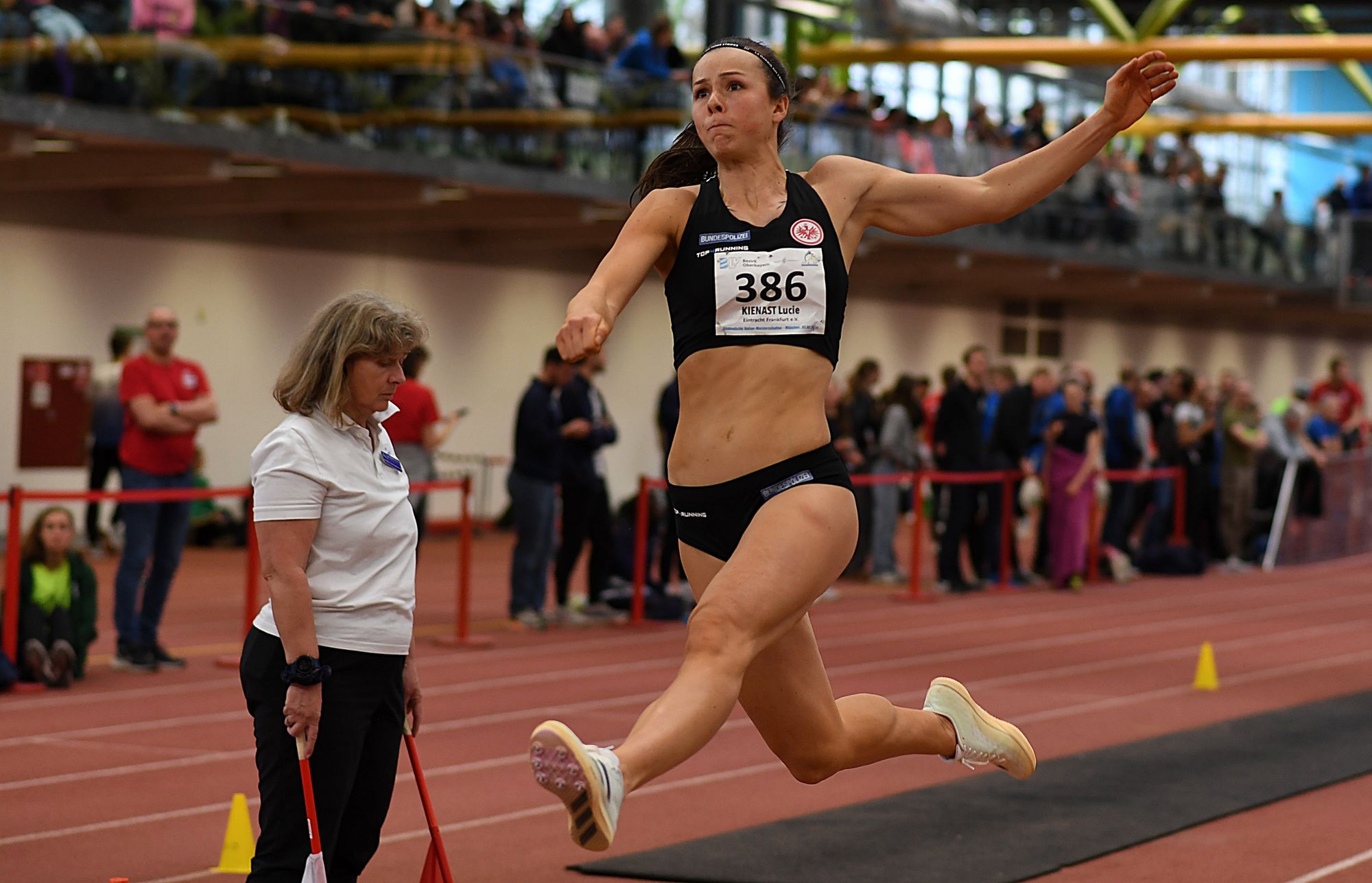 Im Weitsprung der Frauen gab eine Siebenkämpfern den Takt an. Lucie Kienast (Eintracht Frankfurt) setzte sich mit schönen 6,32 Metern gegen Disziplin-Spezialistin Nelly Sohn (LG Staufen/6,27 m) durch. Auch Marie Jung ist normalerweise im Mehrkampf unterwegs. Dem Eintracht-Zugang brachte die neue PB von 6,25 Meter den dritten Platz ein. Ebenfalls zwei Hessinnen stürmten über 800 Meter aufs Treppchen. Mit einem langen Spurt sicherte sich Anne Burkhardtova (LG Bad Soden-Neuenhain) mit der neuen PB von 2:13,48 Minuten die Vizemeisterschaft. Sina Moira Wiedmann (Königsteiner LV) trat als Dritte (2:14,89 min.) die Heimreise an. Für Hawa Jalloh (Wiesbadener LV) blieb nach 8,41 Sekunden (VL 8,36) im Hürden-Finale der undankbare vierte Platz. Miriam Sinnig (Eint. Ffm.) verzichtete nach 8,50 Sekunden in der ersten Runde auf den Endlauf.