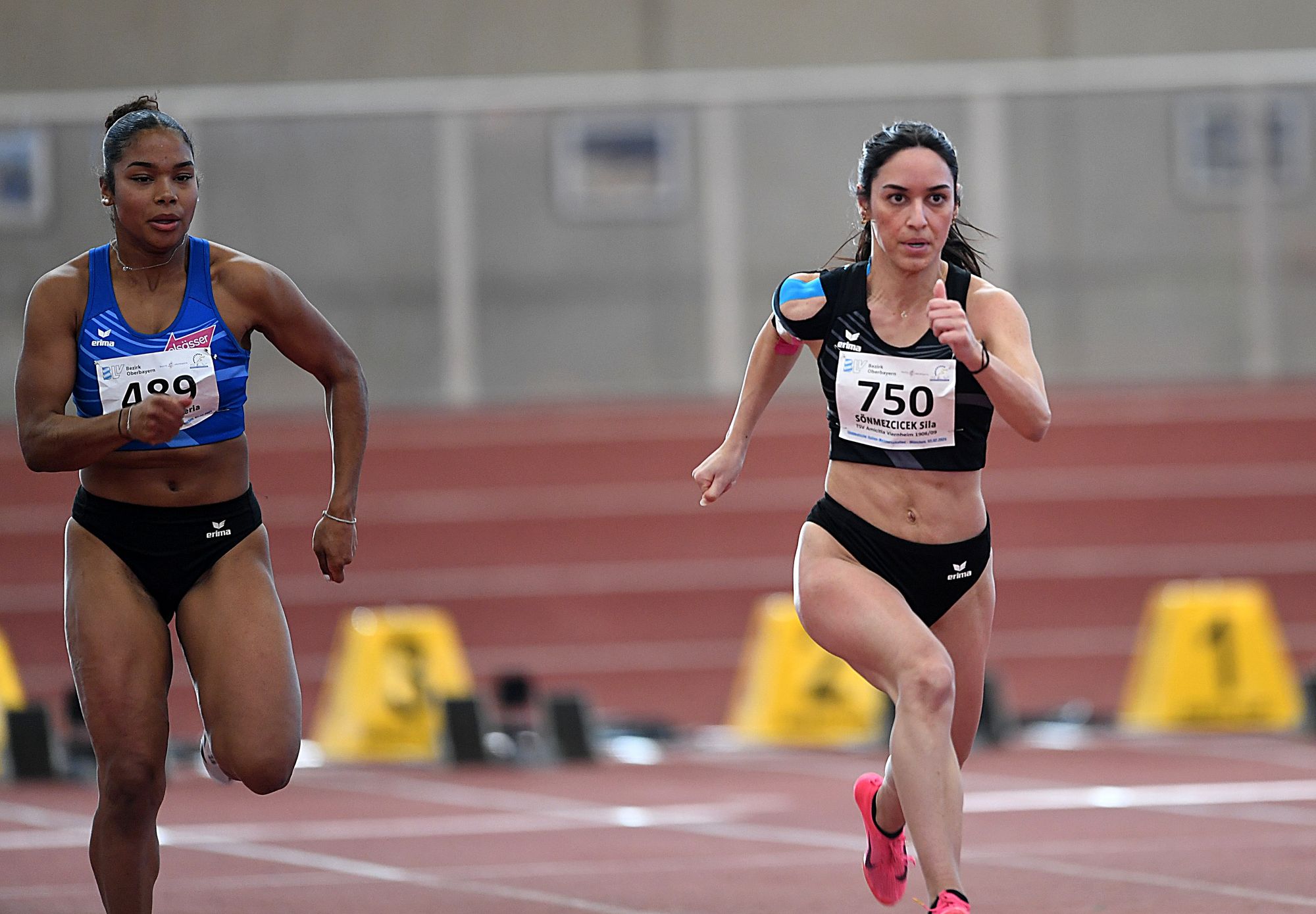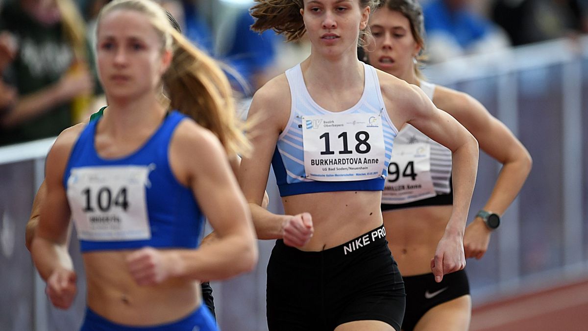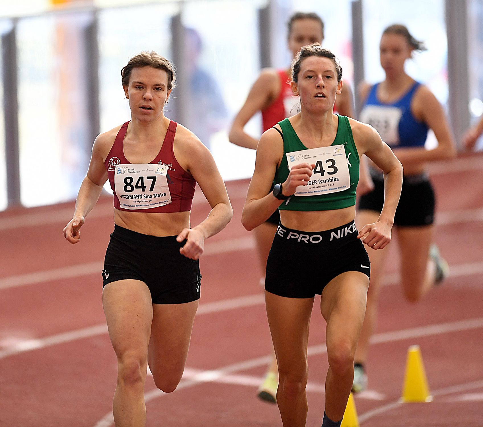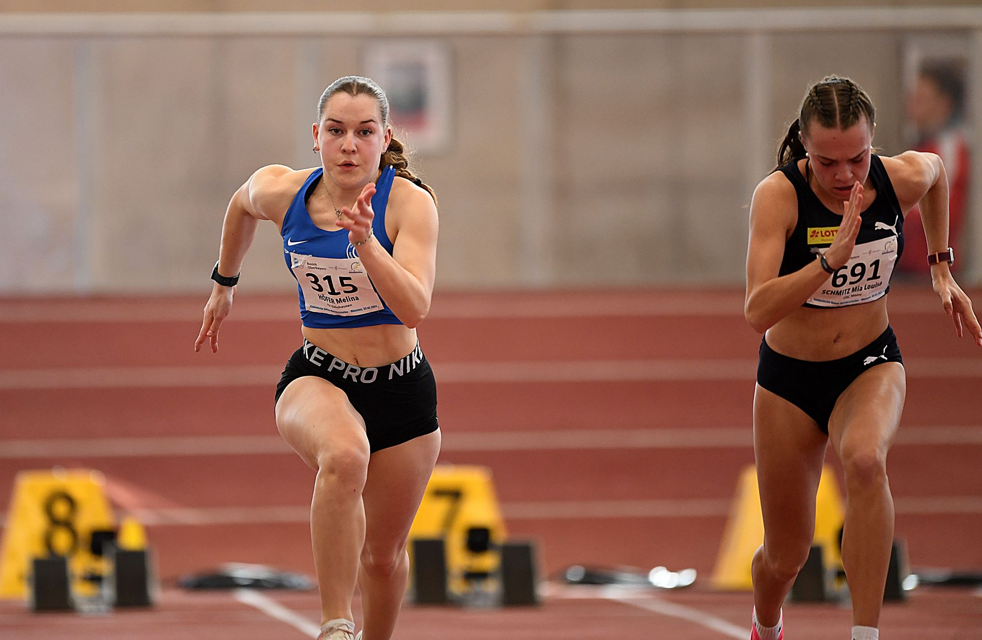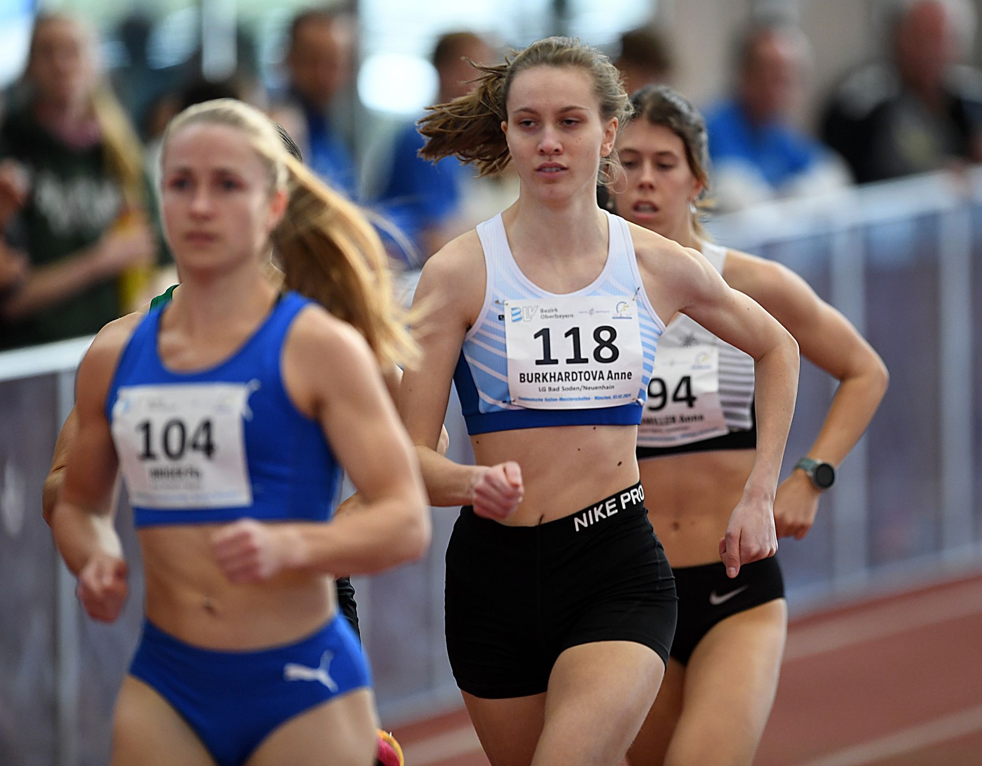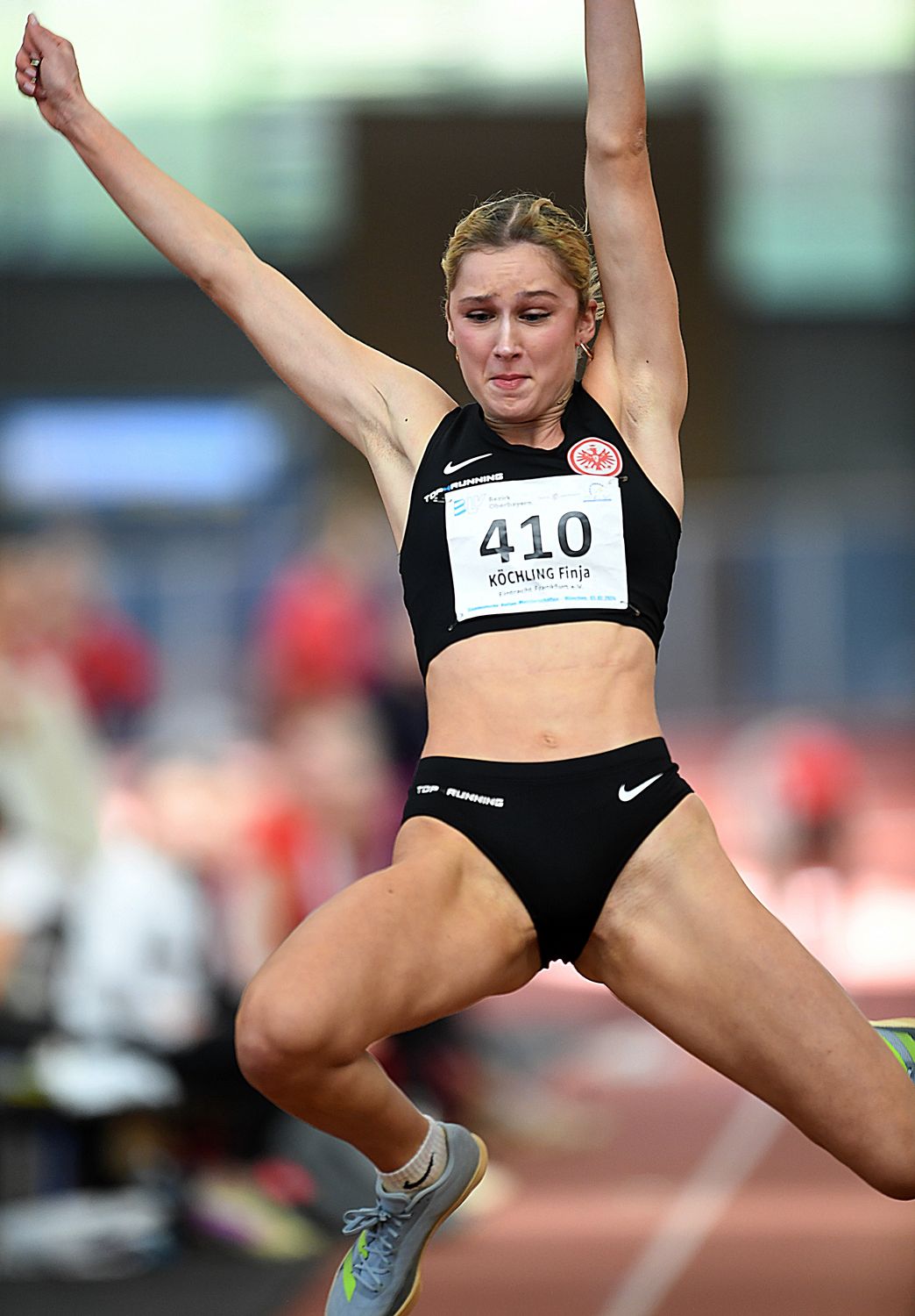 Im Weitsprung der Frauen gab eine Siebenkämpfern den Takt an. Lucie Kienast (Eintracht Frankfurt) setzte sich mit schönen 6,32 Metern gegen Disziplin-Spezialistin Nelly Sohn (LG Staufen/6,27 m) durch. Auch Marie Jung ist normalerweise im Mehrkampf unterwegs. Dem Eintracht-Zugang brachte die neue PB von 6,25 Meter den dritten Platz ein. Ebenfalls zwei Hessinnen stürmten über 800 Meter aufs Treppchen. Mit einem langen Spurt sicherte sich Anne Burkhardtova (LG Bad Soden-Neuenhain) mit der neuen PB von 2:13,48 Minuten die Vizemeisterschaft. Sina Moira Wiedmann (Königsteiner LV) trat als Dritte (2:14,89 min.) die Heimreise an. Für Hawa Jalloh (Wiesbadener LV) blieb nach 8,41 Sekunden (VL 8,36) im Hürden-Finale der undankbare vierte Platz. Miriam Sinnig (Eint. Ffm.) verzichtete nach 8,50 Sekunden in der ersten Runde auf den Endlauf.