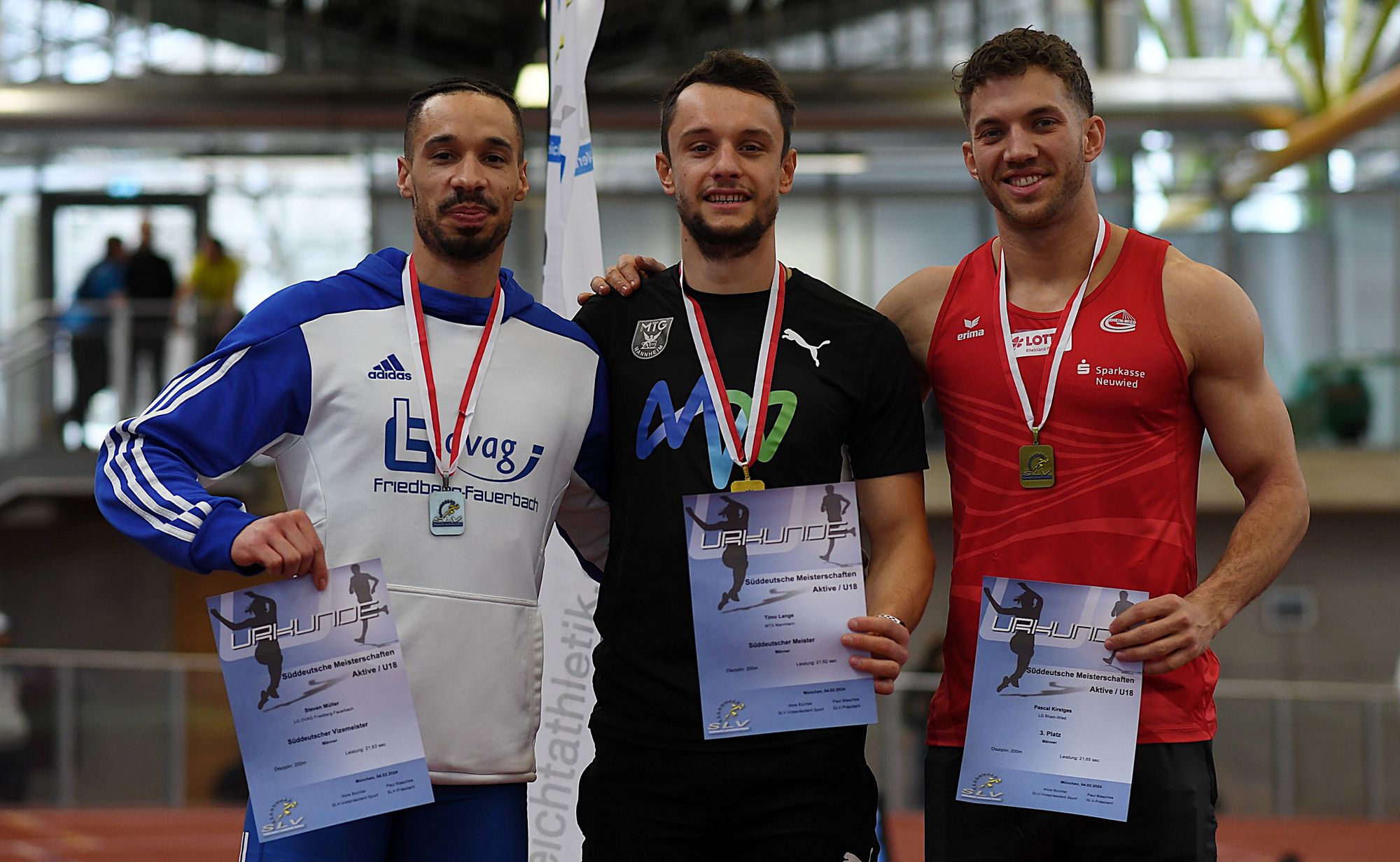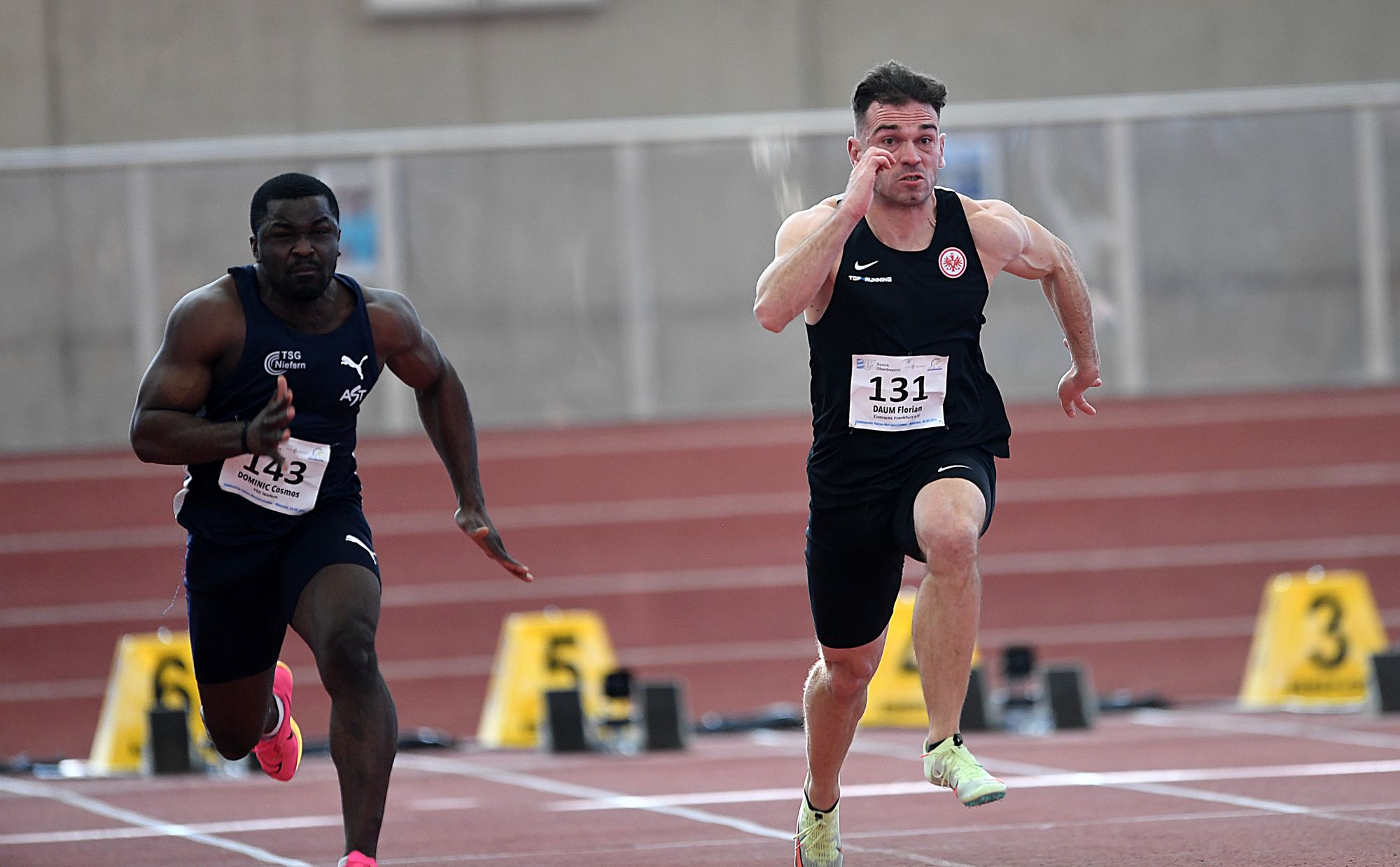 Ein ganz knappe Kiste waren die 200 Meter. Steven Müller (LG OVAG Fredberg-Fauerbach) kommt immer besser in Fahrt. Auf der Hallenrunde trennten ihm im Finale mit 21,63 Sekunden nur winzige 0,01 Sekunden vom Titel, der an Timo Lange (MTG Mannheim) ging. Müller war im Vorlauf sogar 21,58 Sekunden unterwegs und ist damit aktuell bundesweit Sechster. Die beiden Eintracht-Sprinter Phillipp Hennemuth und Daniel Borchardt verzichteten nach 21,97 bzw. 21,98 (im Vorlauf) wegen der Staffel auf einen Einsatz im Finale. Das Frankfurter Duo war zudem auch schon bei den 60 Metern im Einsatz. Hennemuth wurde Fünfter (6,89 sec.) Borchardt (6,98 sec.) kam auf den achten Rang. Kai Strauch (LG Bad Soden-Neuenhain) knackte bei den 400 Metern einmal mehr die „50er“ Marke und lief mit 49,50 Sekunden (VL 49,41 sec.) auf den fünften Platz.