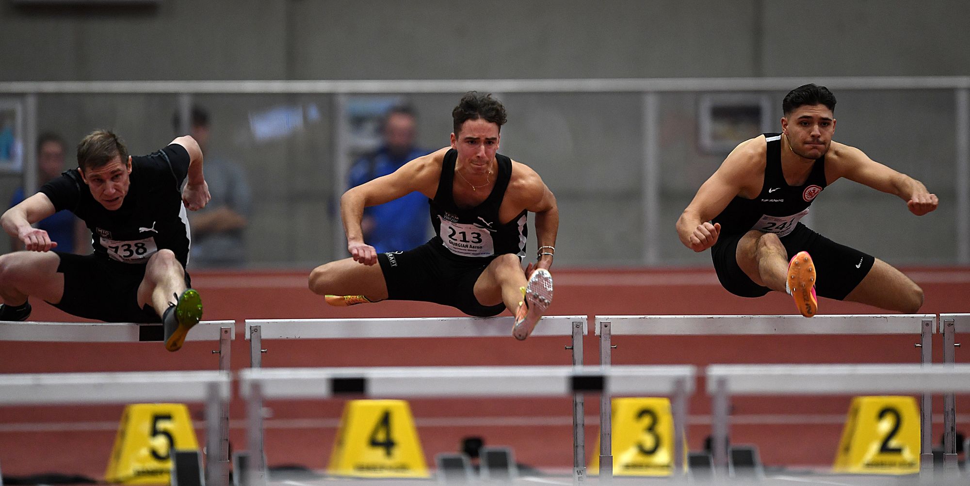 Langhürdler schlägt Kurzhürden-Spezialist. So könnte man die 60 Meter Hürden zusammenfassen. Darius Gußmann (Eintracht Frankfurt) holte sich mit persönlicher Bestzeit von 8,16 Sekunden die Vizemeisterschaft und wird auch in Leipzig in den Startblock gehen. Das Nachsehen hatte Aaron Giurgian (Sprintteam Wetzlar), der mit dem undankbaren vierten Platz (8,19 sec.) zufrieden sein musste.