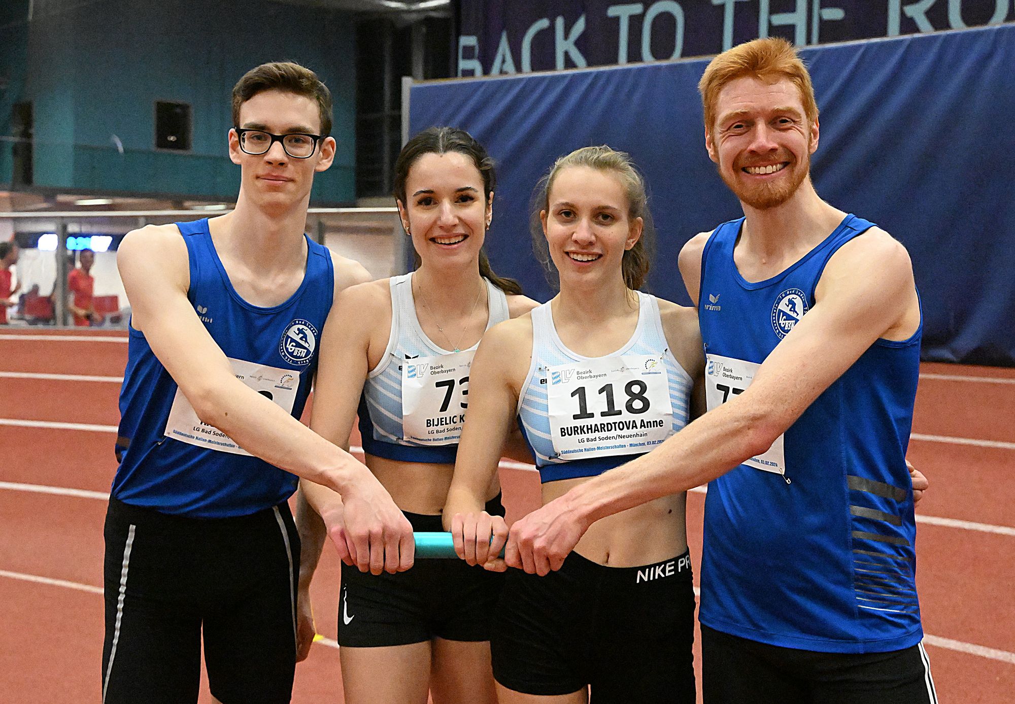 Ein beliebtes Format sind mittlerweile „Mixed Staffeln“. Über 4x400 Meter zeigte die Truppe der LG Bad Soden-Neuenhain (Kai Strauch, Anne Burkhardtova, Fabian Haag, Kristina Bijelic) vollen Einsatz und wurde nach 3:43,15 Minuten mit dem dritten Platz belohnt.