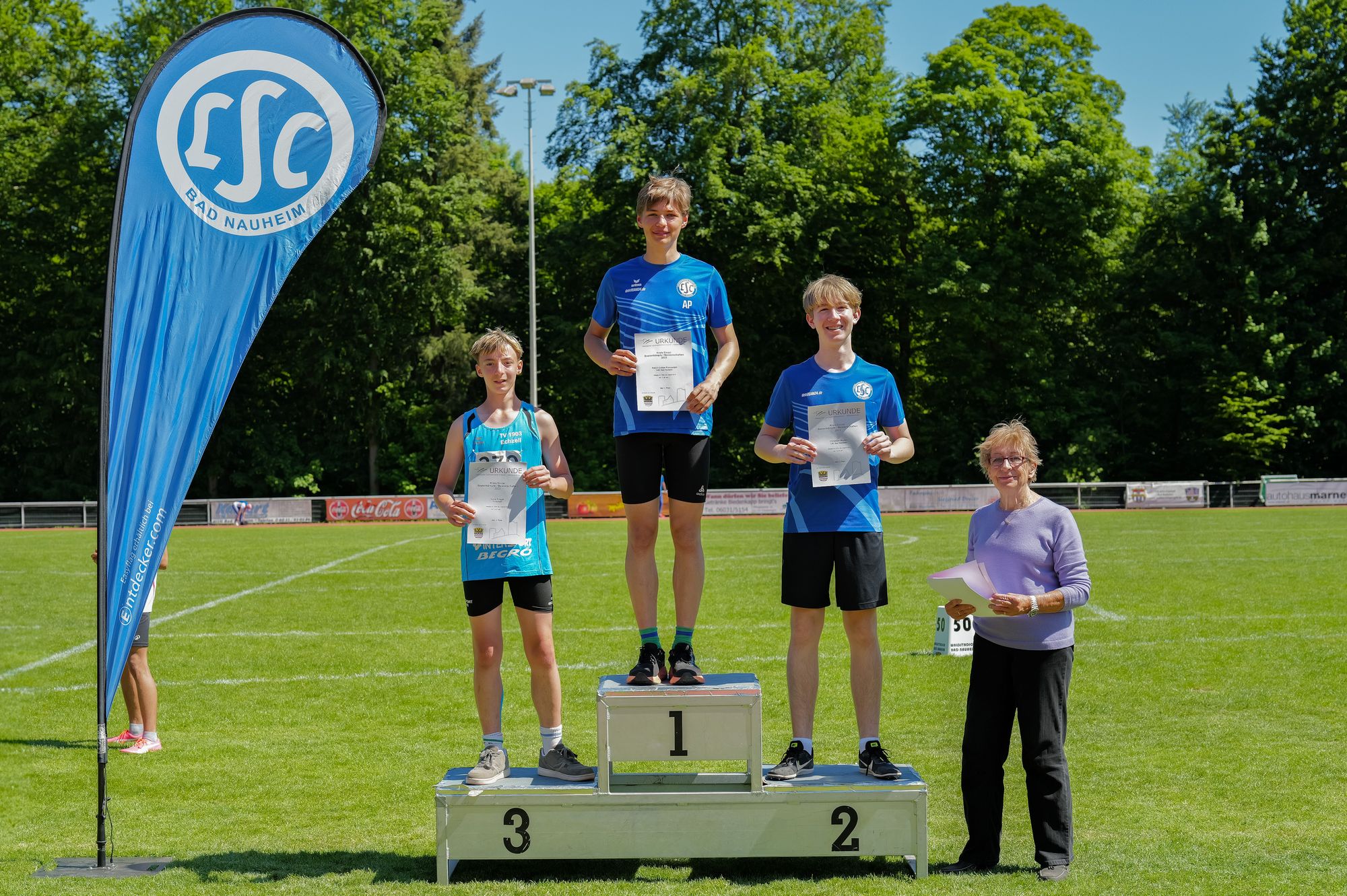 Die Titelsammler: Keanu Liam Ludwig in der M15 und Aaron Lukas Pompetzki in der M14 waren bei all ihren Starts nicht zu besiegen. Der Echzeller Ludwig verteilte seine Siege auf je zweimal Sprint, Sprung und Wurf, wobei er nur im Hochsprung vom 300-Meter-Sieger Felix Siegenthaler (LSC Bad Nauheim) etwas gefordert wurde (1,64 zu 1,56 m). Dessen Teamkollege Pompetzki zeigte erneut seine Vielseitigkeit, sprintete die schnellste 100-Meter-Zeit in der U16, sprang starke 5,79 Meter weit – und holte sich Titel Nummer sechs im direkten Duell mit Ludwig mit seinen Staffelkollegen über 4x100 Meter. Weitere Gemeinsamkeit der Beiden: Auch ihre Schwestern standen ganz oben auf dem Podest am Wochenende, Kim Lena Ludwig in der U20 und Sarah Pompetzki mit der U14-Langstaffel.