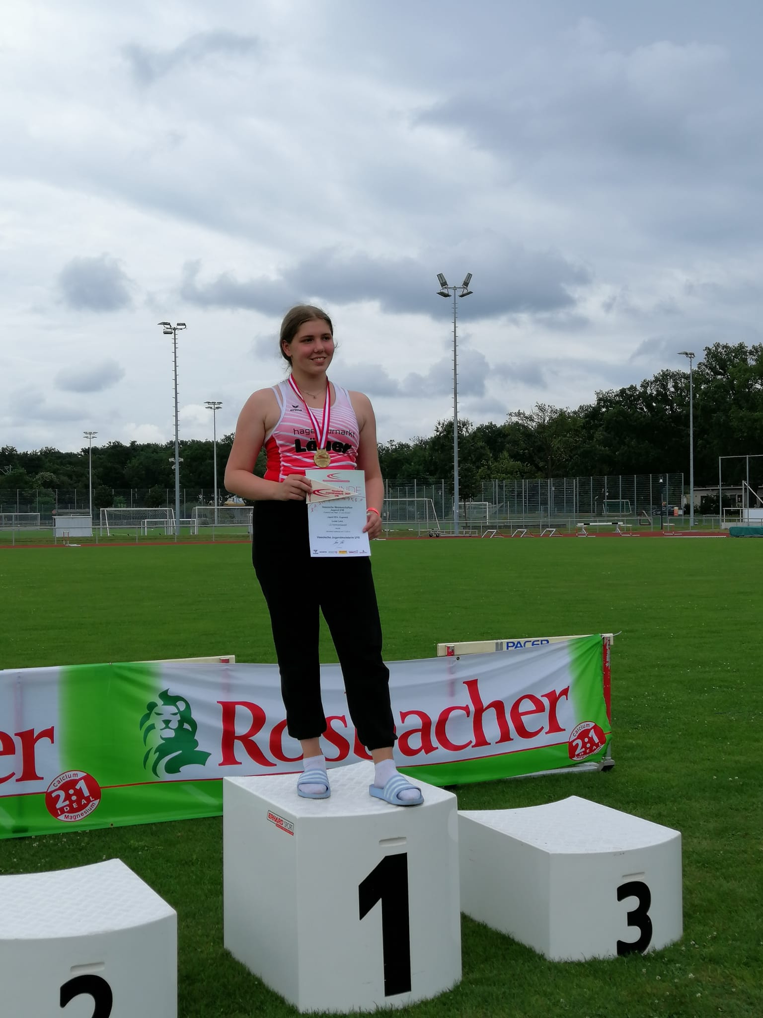 Frankfurt Die Sensation ist perfekt. Nach der völlig überraschenden Süddeutschen Vizemeisterschaft vor Wochenfrist sicherte sich Luisa Lenz vom VfL Wolfhagen am vergangenen Wochenende den Hessischen Meistertitel im Kugelstoß der weiblichen Jugend W14. Mit einer Steigerung ihrer persönlichen Bestleistung um einen dreiviertel Meter auf 12,05 Meter besiegte sie die haushohe Favoritin und Süddeutsche Meisterin, Jule Katharina Koch (TV Wächtersbach) und holte sich den Meisterwimpel.