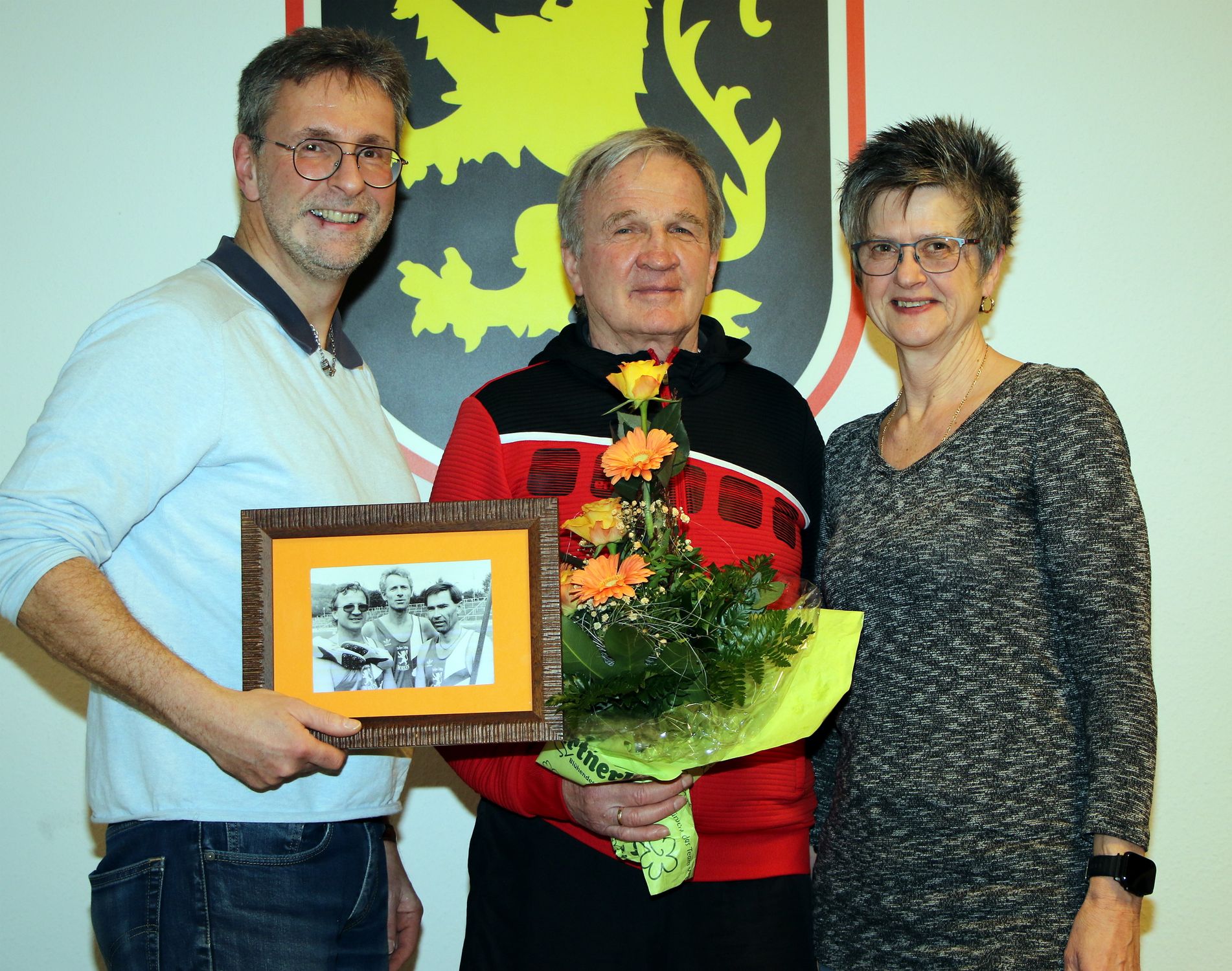 Das Foto zeigt (von links) TuSpo-Borken-Vorsitzender Ingo Kirmeß, Manfred Heinz sowie Abteilungsleiterin Jutta Junker.