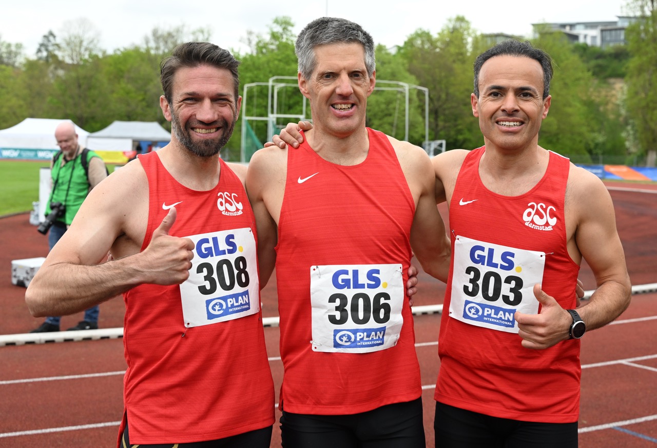 Auch in der M40 schlug die Startgemeinschaft „Darmstadt/Eschenburg“ doppelt zu. Über 4x400 Meter setzten sich Jürgen Dönges, Moritz Lange, Nils Milde und Karin El Malki mit 4:05,41 Minuten durch. Bei den 3x1000 Metern durften nach 8:25,06 Minuten Lars Siegmund, Nils Milde sowie Karim El Malki ganz oben aufs Treppchen klettern.