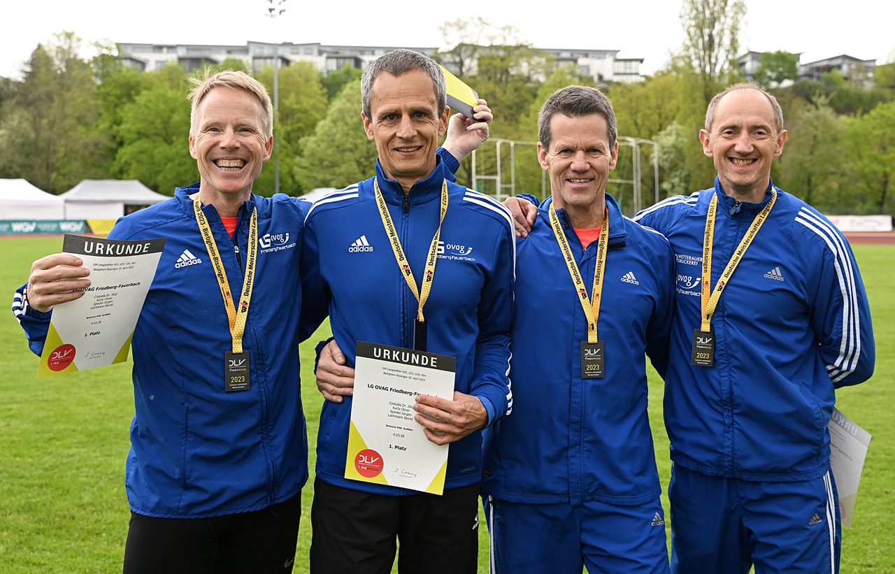 Bei den M50-Senioren setzten sich über 4x400 Meter in 4:03,58 Minuten erwartungsgemäß die Männer der LG OVAG Friedberg-Fauerbach (Dr. Jörg Czekalla, Oliver Kurtz, Jürgen Speidel, Bernd Lachmann) durch.