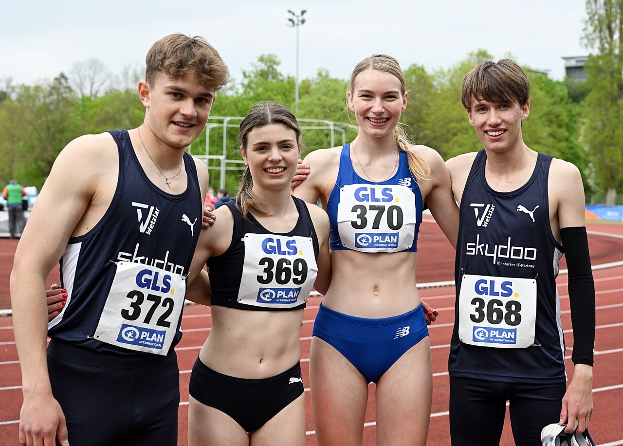Gleich drei hessische Mannschaften gingen über 4x400 Meter in der Mixed-Variante, also zwei Frauen und zwei Männer, auf die Jagd nach schnellen Zeiten. Mit 19 Teams in drei Zeitläufen hatte dieses Format einen tollen Zuspruch. An der Spitze verteidigte der VfL Sindelfingen (mit den beiden Assen Carolina Krafzik und Constantin Preis) mit 3:24,06 Minuten den Titel vor der LG Nord Berlin (3:28,74 min.) sowie dem SCC Berlin (3:29,45 min.). Der TV Wetzlar (Tom Söber, Sophia Volkmer, Antonia Unger, Kjell Wörner) stürmte mit 3:35,44 Minuten auf Position sieben der Endabrechnung ins Ziel. Einen Wimpernschlag langsamer als bei den Süddeutschen Hallenmeisterschaften in Sindelfingen. Als Neunte ging die Truppe der LG Bad Soden/Sulzbach/Neuenhain (Kai Strauch, Silke Dittombee, Anne Burkhardtova, Johannes Nortmeyer/3:36,03 min.) auf die Heimreise. Die LG OVAG Friedberg-Fauerbach (Lars Hieronymi, Anna Hülsmann, Marina Zachartschuk, Tim Dillemuth) fand sich nach 3:45,39 Minuten auf dem sechszehnten Rang wieder.