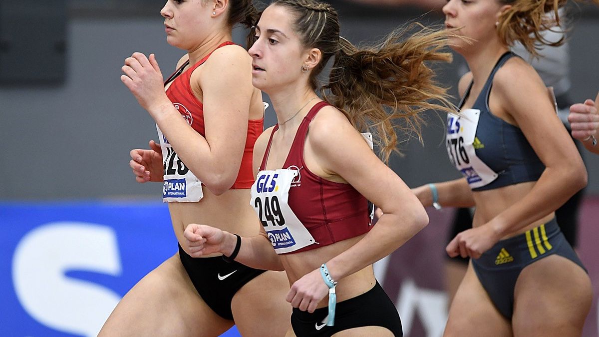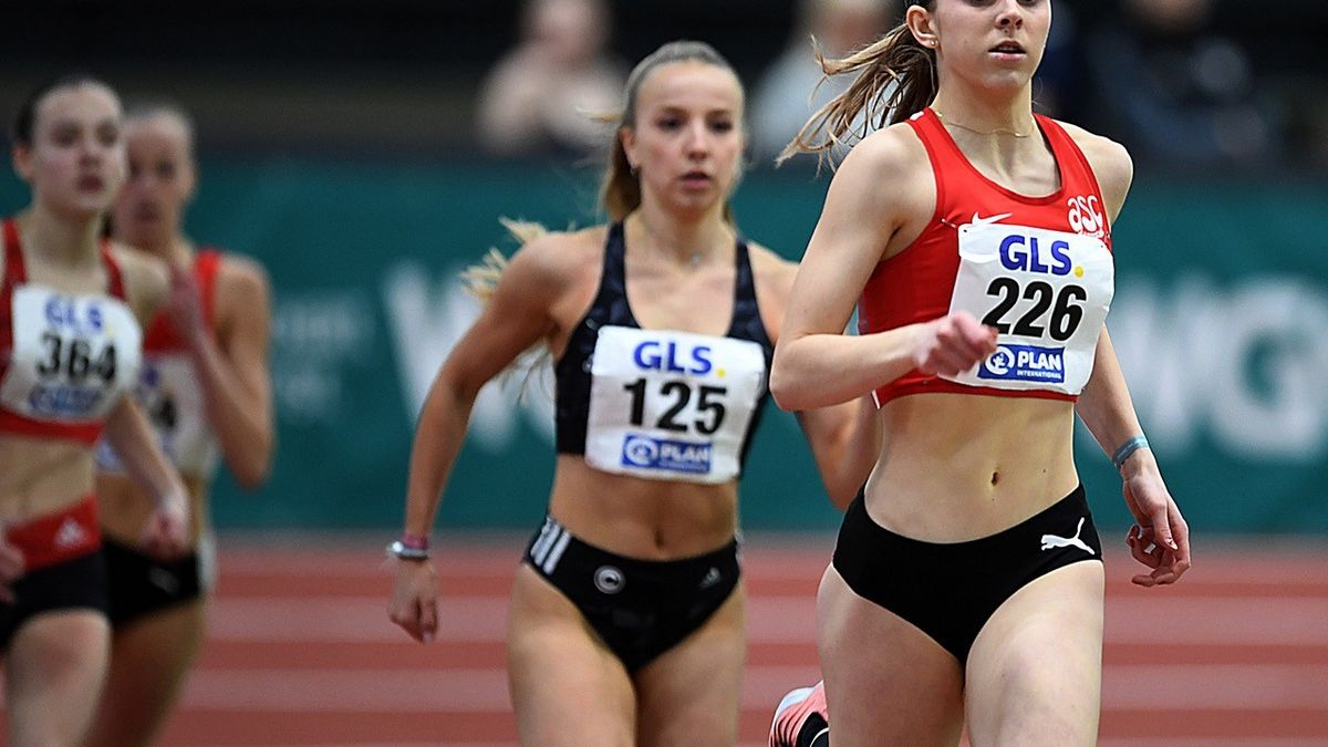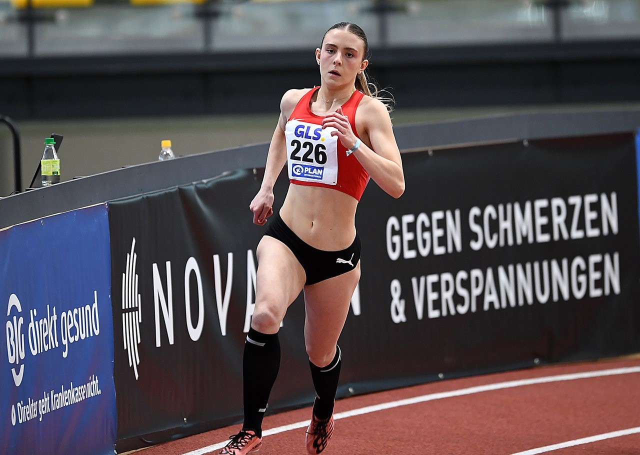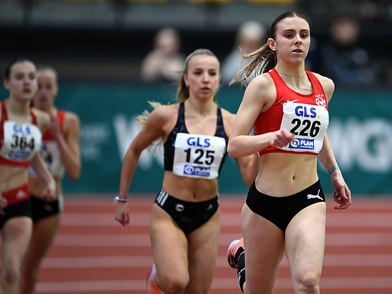 1500 Meter: Fast hätte es über die 1500 Meter auch eine Medaille für Hessen gegeben. Die Fahrt war hier am Anfang nicht übermäßig hoch, so dass Sarah Köcher (Königsteiner LV) auf den ersten 500 Meter selbst fürs Tempo sorgte. Vier Runden vor Schluss wurde es dann flotter, die KLVlerin war immer noch mit in der Spitzengruppe dabei, ehe sie in der Endphase etwas abreißen lassen musste. Mit der neuen Hallenbestzeit von 4:38,53 Minuten wurde Sarah Vierte. „Damit bin ich absolut zufrieden. Die letztendlich Drittplatzierte kam in der letzten Kurve von hinten, da konnte ich einfach nicht mehr hochschalten. Jetzt freue ich mich auf eine lockere Woche mit deutlich reduziertem Training“, so die Kaderathletin, die im Sommer zur U20 Europameisterschaft will.