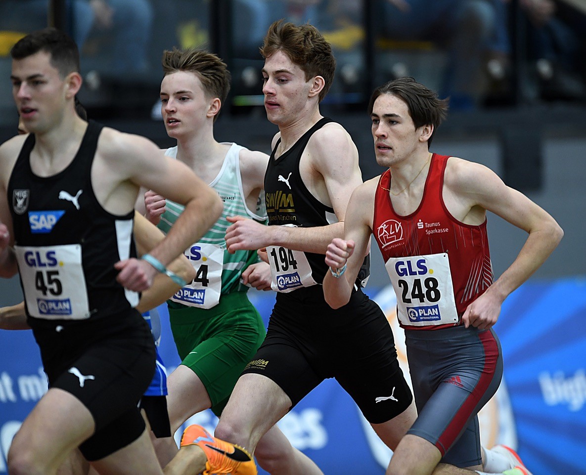 800 Meter: Nach seinem starken Auftritt im Vorlauf, stand Louis Buschbeck (Königsteiner LV) beim Finale sichtlich nervös an der Startlinie. Der eher kleine Mittelstreckler bekam gleich in der ersten Runde auch zwei heftige Schubser ab, die ihn aber nicht aus dem Konzept brachten. Weiter ging es ohne Zwischenfälle. Als dann die Glocke zur letzten Runde geläutet wurde, konnte der sprintstarke KLVler aus guter Position seine Attacke im Kampf um die Medaillen starten. An der Spitze war Elija Zien (SC Neunbrandenburg) mit 1:54,97 Minuten als Meister „durch“. Mit fast einer Sekunden Rückstand folgte Malik Skupin-Alfa (LG Offenburg/1:55,95 min.) als Zweiter. Mit einem tollen Finish sicherte sich Buschbeck im ersten U20-Jahr mit 1:56,35 Minuten DM-Bronze - sein bisher größter Erfolg.