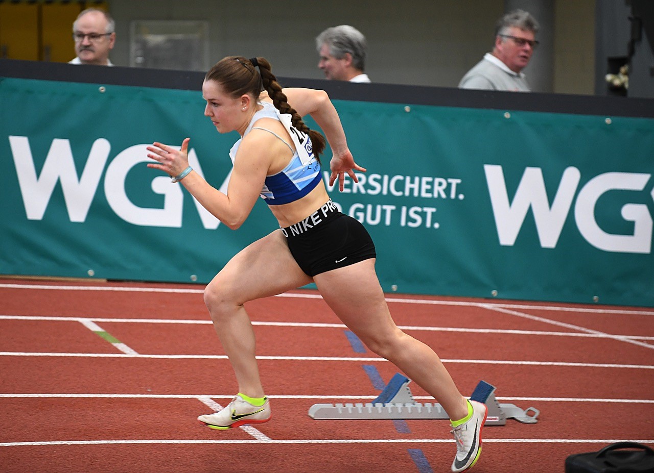 Weitsprung: Alle drei Medaillen gingen hier mit einer Sechser-Weite weg. An der Spitze zeigte Libby Buder (SC Potsdam) schöne 6,31 Meter. Für Bronze, hier konnte Lokalmatadorin Samira Attermeyer (LG Olympia Dortmund) jubeln, wären 6,02 Meter nötig gewesen. Bei glatten sechs Metern notiert die Freiluft-PB von Finja Köchling. Die Eintrachtlerin kam unter dem Hallendach auf 5,87 Meter und landete damit auf dem undankbaren vierten Platz. Teamkollegin Carmen Nowicka brachte als Siebte 5,77 Meter in die Wertung.