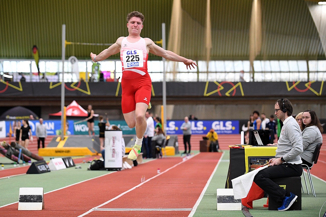 Weitsprung: Eigentlich wollte Julian Holuschek (Eintracht Frankfurt) bei der Vergabe von Edelmetall ein Wörtchen mitreden. „Julian ist gut drauf. Ich bin gespannt, was geht“, verriet Kadertrainer Peter Rouhi. Der Adlerträger, er knackte bereits mehrfach die sieben Meter, beendete den Vorkampf mit 6,85 Metern als Sechster. Dabei blieb es dann aber. Bei den weiteren drei Sprüngen im Finale gelang Holuschek keine Steigerung mehr. Gar nicht erst ins Finale der Top-Acht kam Marc Mercier. Der Mann vom ASC Darmstadt blieb mit 6,59 Metern (14.) weit unter seinen Möglichkeiten.