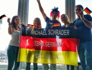 „Ich kann es kaum erwarten. Ich freue mich auf zwei heiße Tage in Peking", sagt der Zehnkämpfer, der seit dem 1. Januar 2014 für den SC Hessen Dreieich startberechtigt ist. „Natürlich will ich vorne mit dabei sein." Schrader möchte noch etwas draufsatteln auf seine Jahresbestleistung, doch selbst im Optimalfall dürfte es nicht reichen, um den Weltrekordhalter Ashton Eaton (9.039 Punkte) vom Thron zu stoßen. Bezüglich der Form des US-Amerikaners, der seit zwei Jahren keinen Zehnkampf absolviert hat, wird in Peking über exzellente Trainingsleistungen getuschelt. „Er ist eigentlich nicht zu schlagen", sagt Schrader. Bundestrainer Rainer Pottel meint: „Eaton spielt in einer anderen Liga." Die weiteren Medaillenanwärter heißen Trey Hardee (8.725 Punkte), damit ist der amerikanische Ex-Weltmeister derzeit Weltjahresbester; Damian Warner (Kanada/8.659 Punkte, Landesrekord) und Kai Kazmirek (LG Rhein-Wied/p.B. 8.471 Punkte). Schraders WG-Kumpel, der Olympiasechste Rico Freimuth (Halle/Saale) hat eine Bestleistung von 8.382 Punkten.