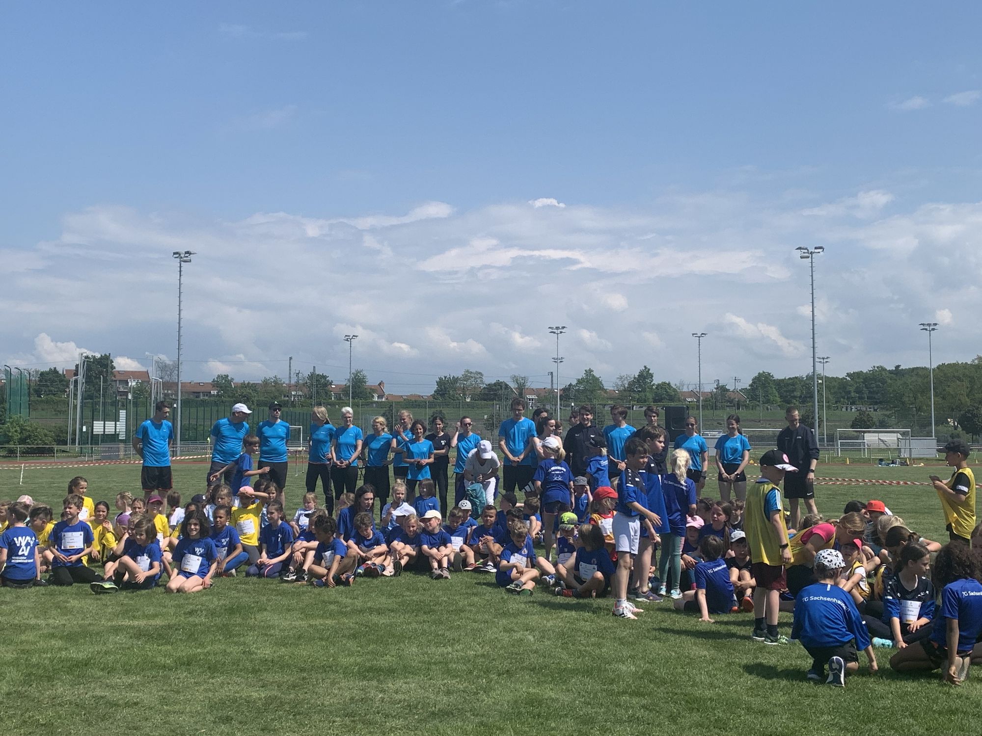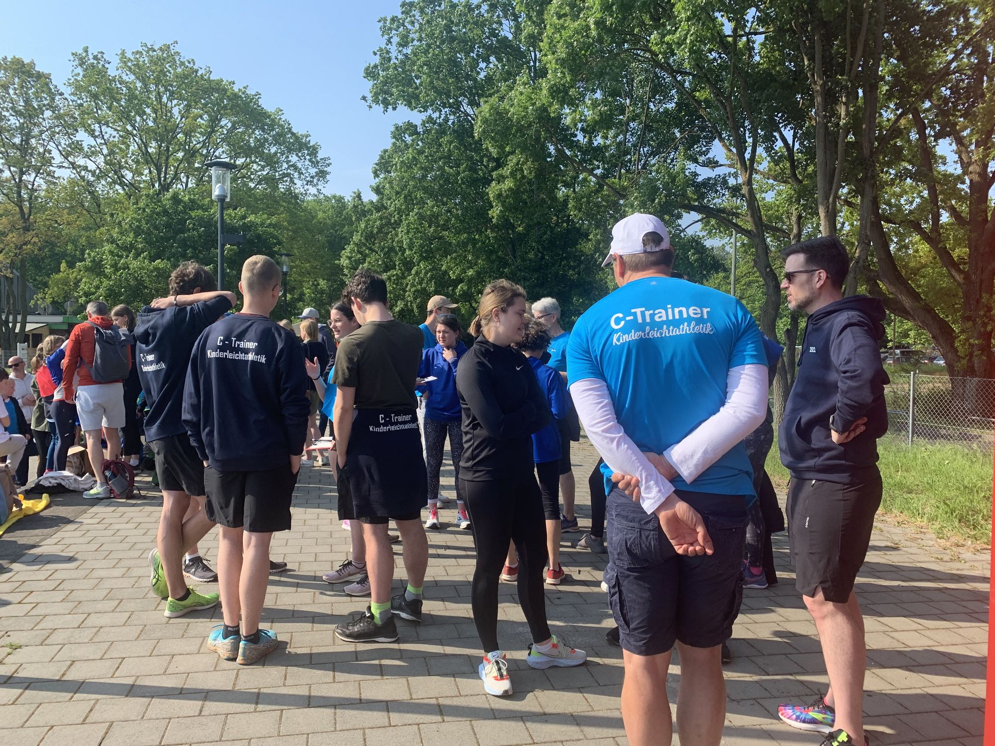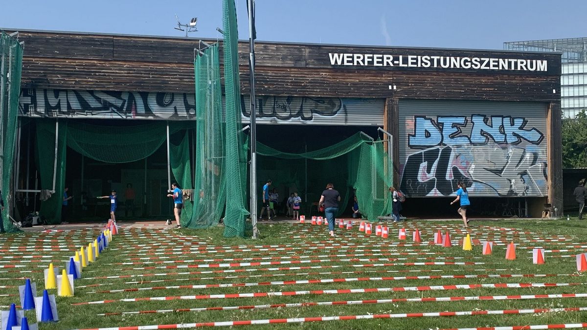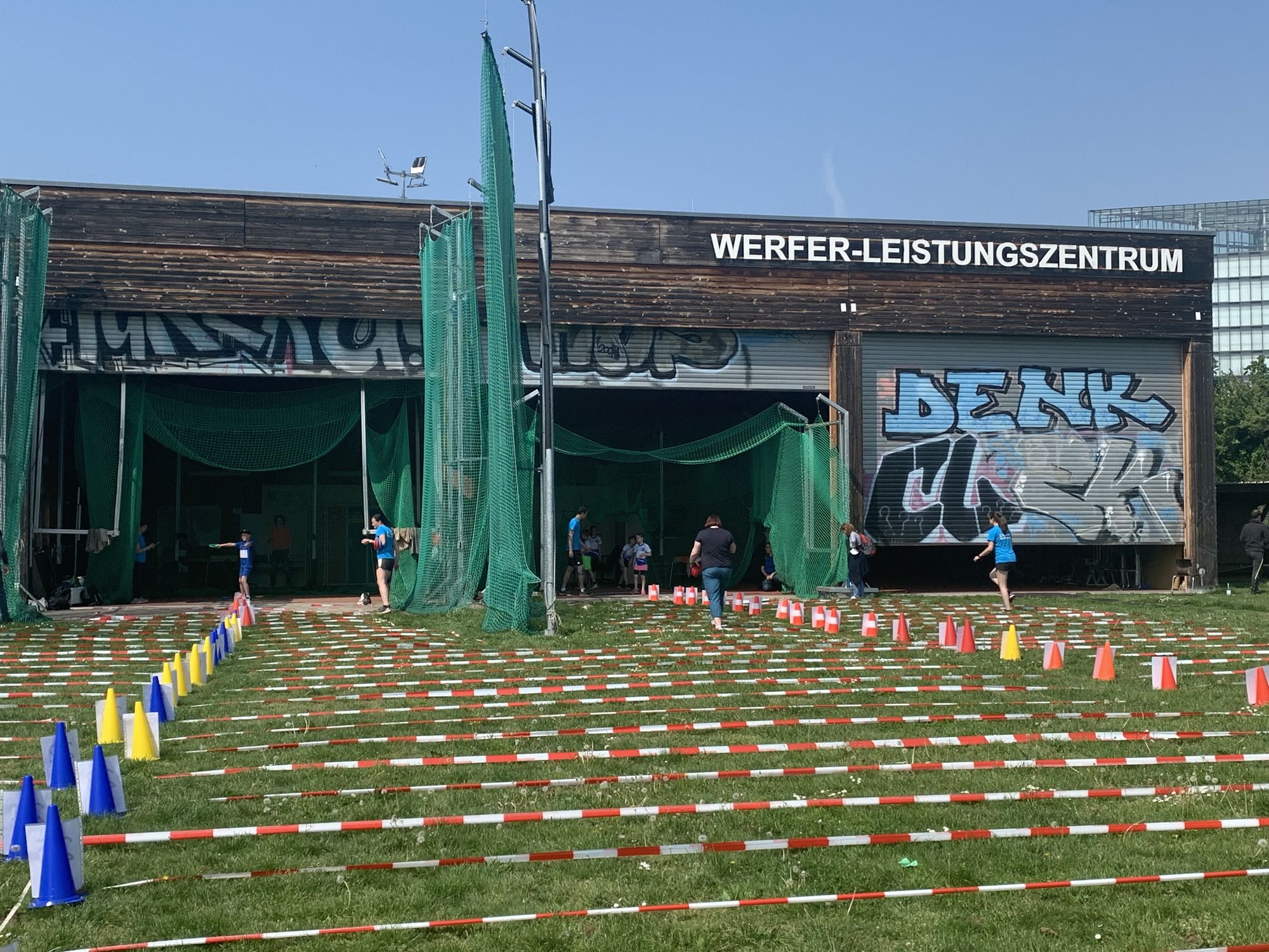 Nach erfolgreicher Zwischenprüfung, in der die Teilnehmenden eine Trainingsstunde konzipieren und vorstellen mussten, folgte die Planung des Kinderleichtathletik-Teamwettbewerbs U10 am Bundesstützpunkt Leichtathletik in der Frankfurter Hahnstraße. 16 Teams, insgesamt 180 Kinder, absolvierten am 8. Mai bei strahlendem Sonnenschein die Disziplinen Hoch-Weitsprung, Drehwurf, Staffellauf und Wechselsprünge. „Das Highlight war definitiv der Transportlauf zum Schluss“, sagte Inga. Zu Guter-Laune-Musik rannten die Kids um die Wette, sammelten Gummis, während Trainerinnen und Trainer, Eltern und andere Zuschauende lautstark anfeuerten.