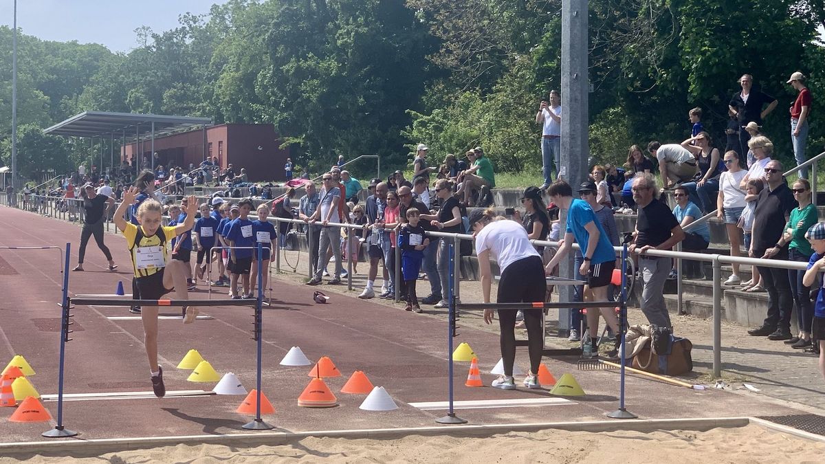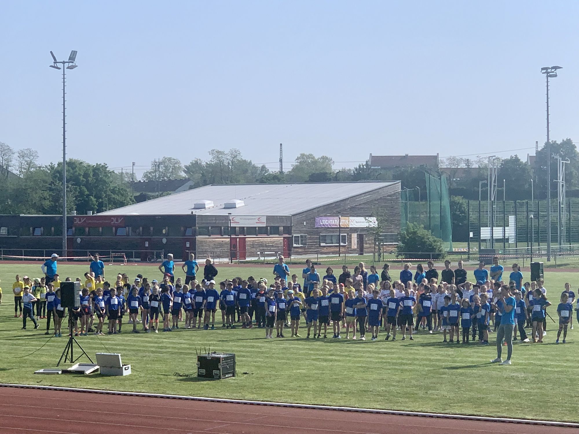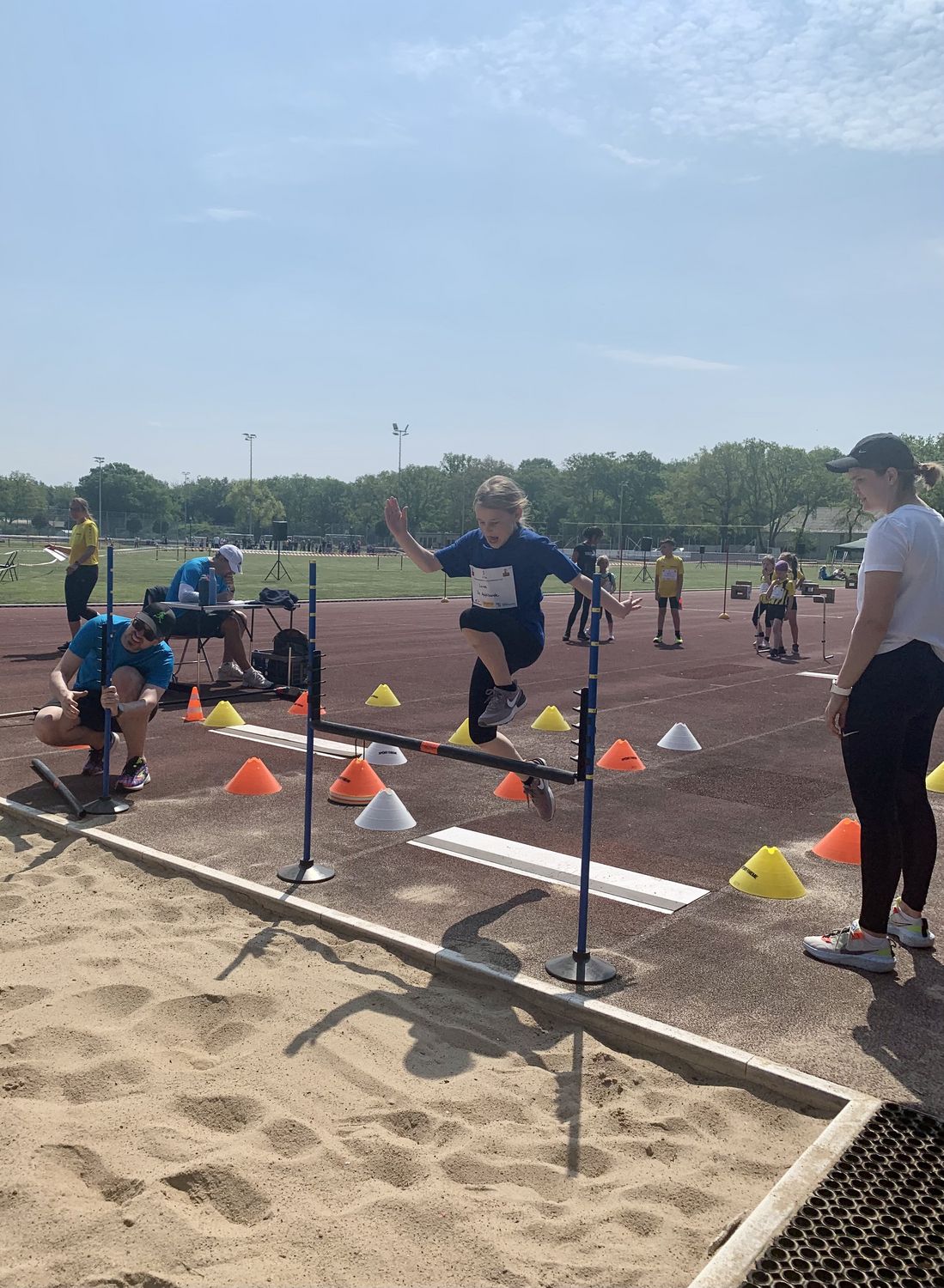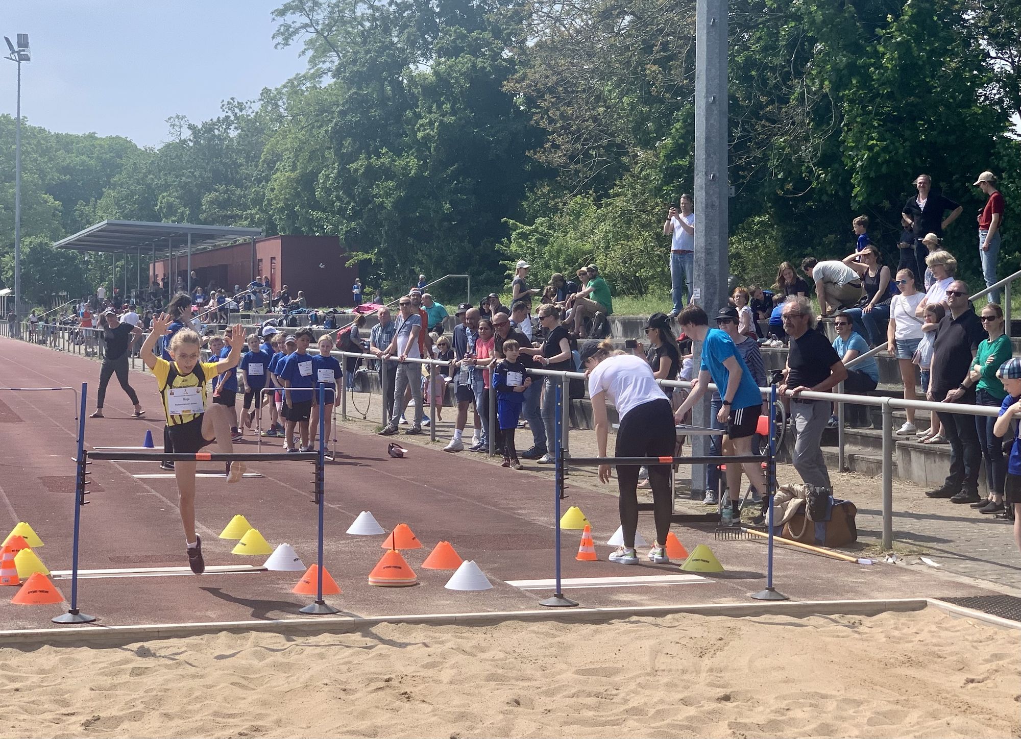Nach erfolgreicher Zwischenprüfung, in der die Teilnehmenden eine Trainingsstunde konzipieren und vorstellen mussten, folgte die Planung des Kinderleichtathletik-Teamwettbewerbs U10 am Bundesstützpunkt Leichtathletik in der Frankfurter Hahnstraße. 16 Teams, insgesamt 180 Kinder, absolvierten am 8. Mai bei strahlendem Sonnenschein die Disziplinen Hoch-Weitsprung, Drehwurf, Staffellauf und Wechselsprünge. „Das Highlight war definitiv der Transportlauf zum Schluss“, sagte Inga. Zu Guter-Laune-Musik rannten die Kids um die Wette, sammelten Gummis, während Trainerinnen und Trainer, Eltern und andere Zuschauende lautstark anfeuerten.