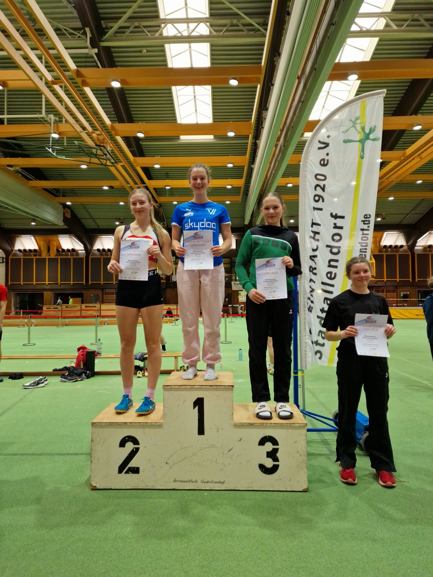 Die beiden jüngsten Starterinnen des TV Wetzlar waren Sophilia Schreier und Lena Walów. Zweitgenannte lief im 60m-Finale 8,78s (Platz drei), Sophilia Schreier wurde mit 8,87s Fünfte. Im Vorlauf lief sie mit 8,77s eine persönliche Bestleistung. Lena Walów probierte sich dann noch über die 300m aus (47,67s).