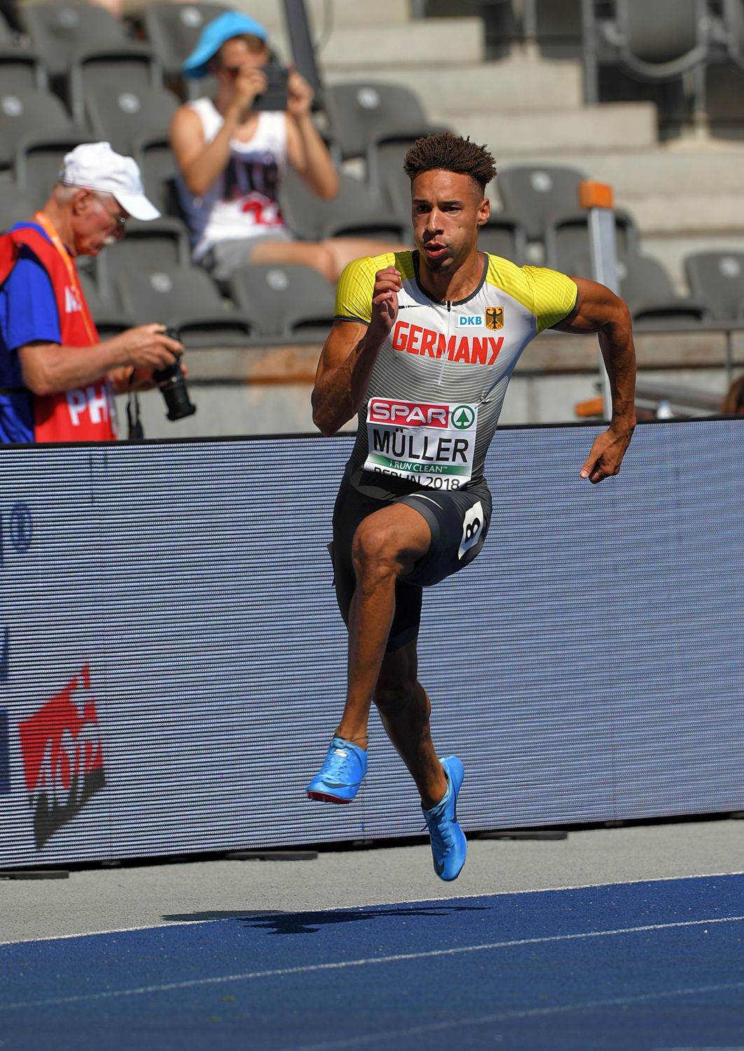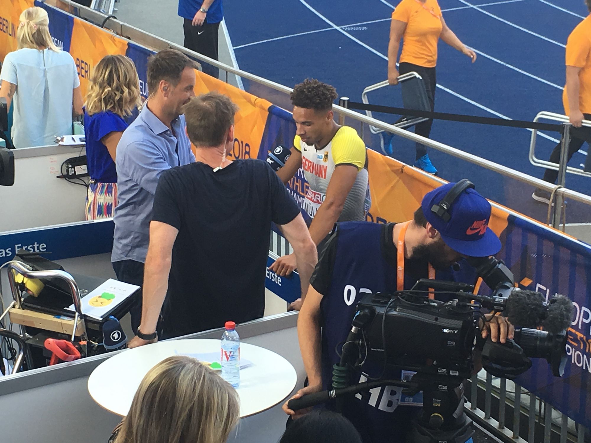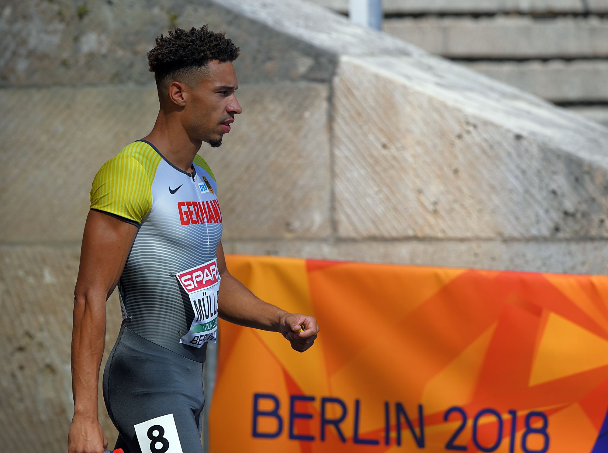 Es liegt wohl recht nahe bei der Wahrheit, wenn man den Eindruck weitergibt, dass der schnelle Hesse ziemlich geflasht war von allem, was bei dieser EM passiert. „Ein toller Auftritt“, sagt der Stadionmoderator, doch Müller antwortete auf dessen zwei Fragen einsilbig, jeweils ein Wort. Was direkt nach dem Rennen und auch ein wenig später in seinem Kopf vorging, hätte man gerne gewusst; ebenso, wie er sich auf seine erste internationale Meisterschaft vorbereitet hat und wie er die Zeit bis zum Halbfinale überbrückt. Doch er sagte nur: „Berufsgeheimnis.“ Okay, er werde seinen Trainer Otmar Velte anrufen, um zu besprechen, „was ich noch besser machen kann“. Doch ansonsten war Müller beinhart im Tunnel. Dass er noch nie auf Bahn 8 gelaufen sei, meinte er noch und dass „wir alles getan haben, um die Zeit auf die Bahn zu bringen“. Dann verschwand er ins DLV-Mannschaftshotel.