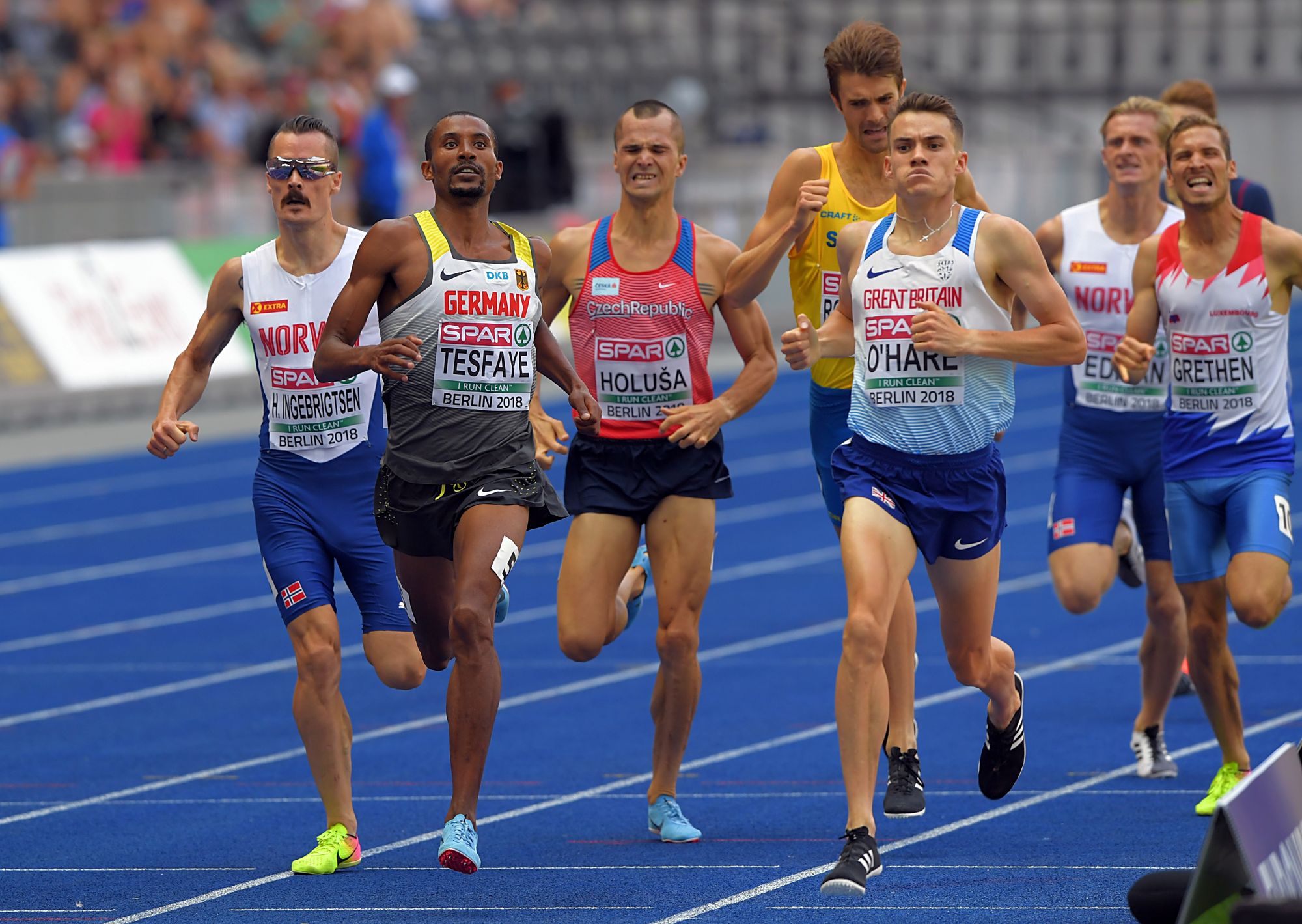 Am dritten EM-Tag musste auch Homiyu Tesfaye im Glutofen Olympiastadion auf die blaue Bahn. Und auch sein erster Auftritt war nicht sein letzter. Im ersten von insgesamt drei Vorläufen über 1.500 Meter sah es zunächst gut aus für den 25-jährigen Mittelstreckenläufer von der LG Eintracht Frankfurt, dann eher mittelprächtig, und als die Pessimisten zu bemerken gedachten, es würde nun kaum noch etwas gehen nach vorne, drückte Tesfaye auf der Zielgeraden aufs Gaspedal und sicherte sich den zweiten Platz in 3:49,28 Minuten. Die direkte Qualifikation für das Finale – sichtbar durch ein großes „Q“ - war gelungen. Die Zeit? Nebensache. Wichtig war es, auf Rang eins bis drei einzulaufen oder einer von zwei Zeitschnellsten zu sein. Der Endlauf wird am Freitag um 21.50 Uhr gestartet.