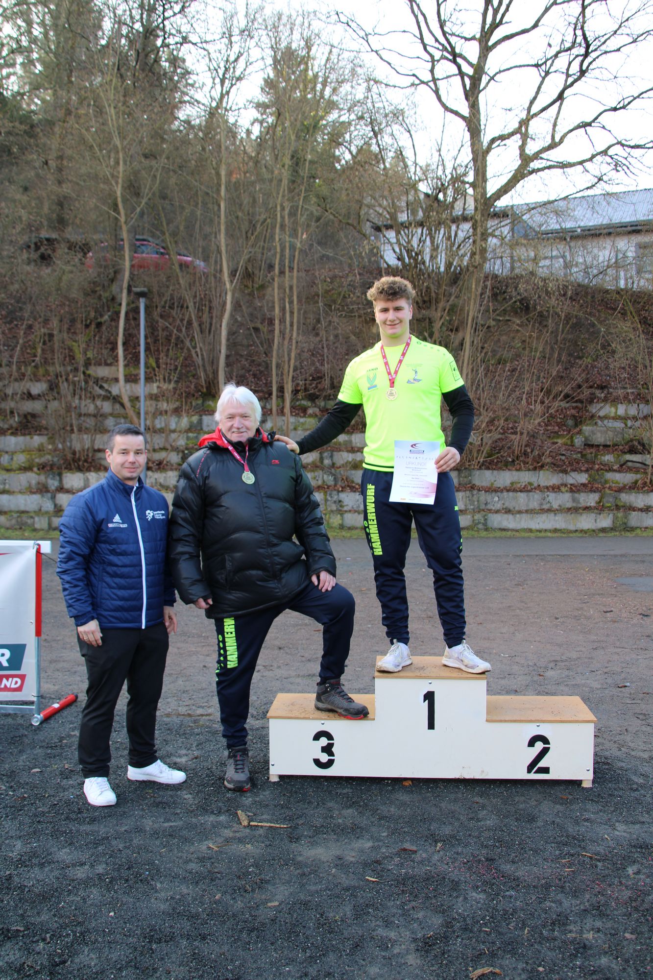 Den Hessenmeistertitel sicherte sich Benedict Michel vom LSC Bad Nauheim mit 50,76 m. Damit verfehlte er die DM-Norm von 54,00 m leider. Auf Platz zwei folgte Jens-Philipp Engelmann (TSG Wehrheim) mit 36,50 m. Bronze ging an Keno Lemke (LC Olympia Lorsch), der mit 34,68 m eine neue persönliche Bestleistung aufstellte.