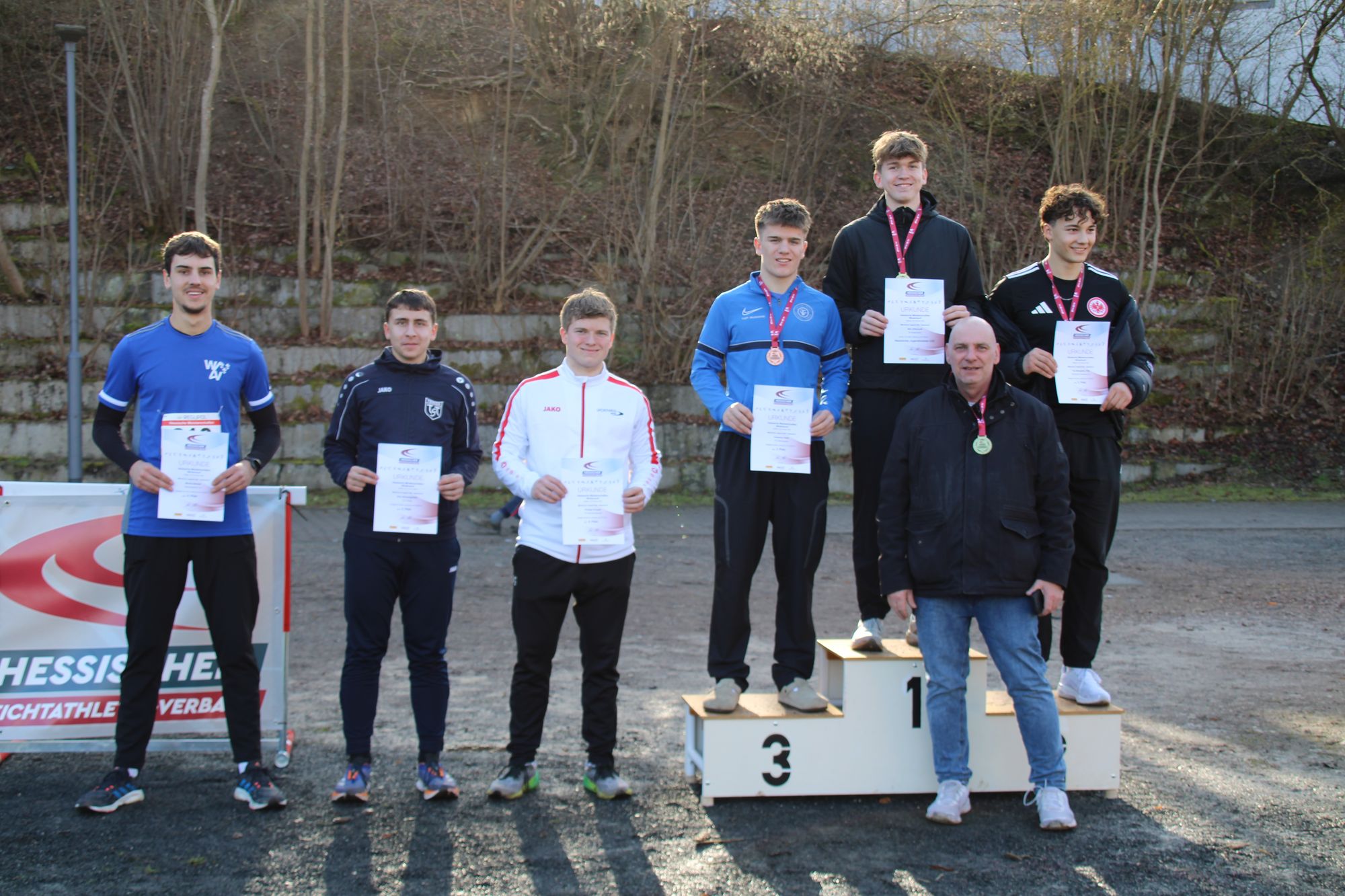 Philipp Zölls (TSG Friedrichsdorf) krönte sich mit 34,34 m zum Hessenmeister. Silber ging an Amin Gaoui (TV Bermbach) mit 32,16 m. Bronze holte sich Matheo Brandt (TSV 05 Remsfeld) mit 31,62 m.