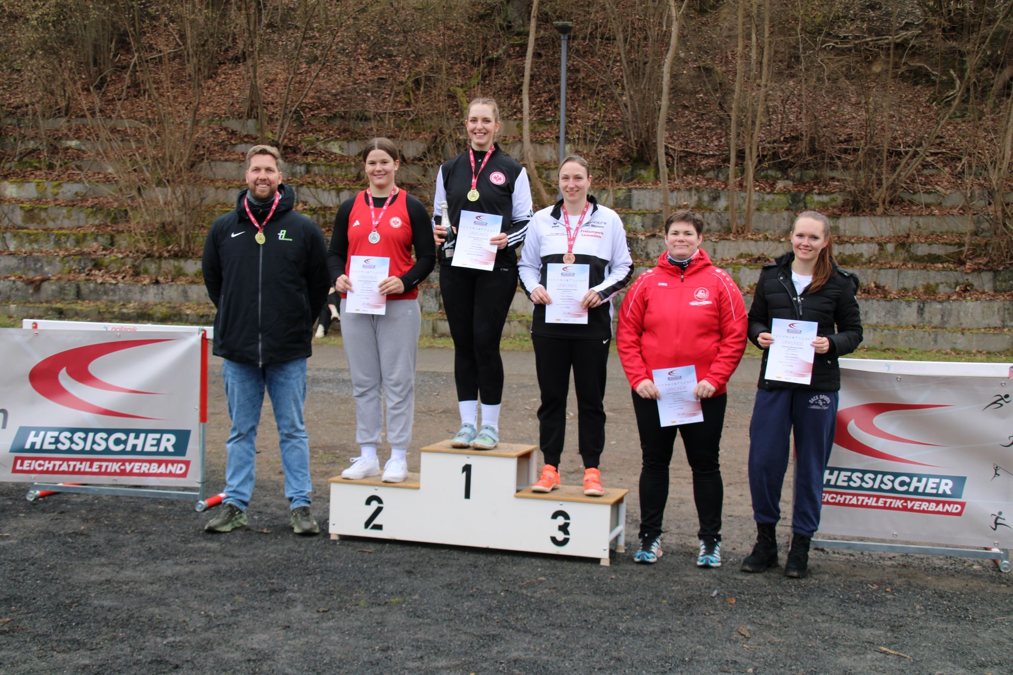 Leia Braunagel (Eintracht Frankfurt) wurde mit einer Weite von 58,73 m Hessenmeisterin. Sie wird auch bei der Winterwurf DM an den Start gehen und übertraf die Norm von 51,00 m deutlich. Silber holte sich Soraya Sprenger (Eintracht Frankfurt) mit 46,73 m. Auch sie ist bereits für Sindelfingen gemeldet, da sie die Norm im Vorjahr erfüllt hat. Bronze ging an Vanessa Wallisch (TSG Wehrheim) mit 45,51 m.