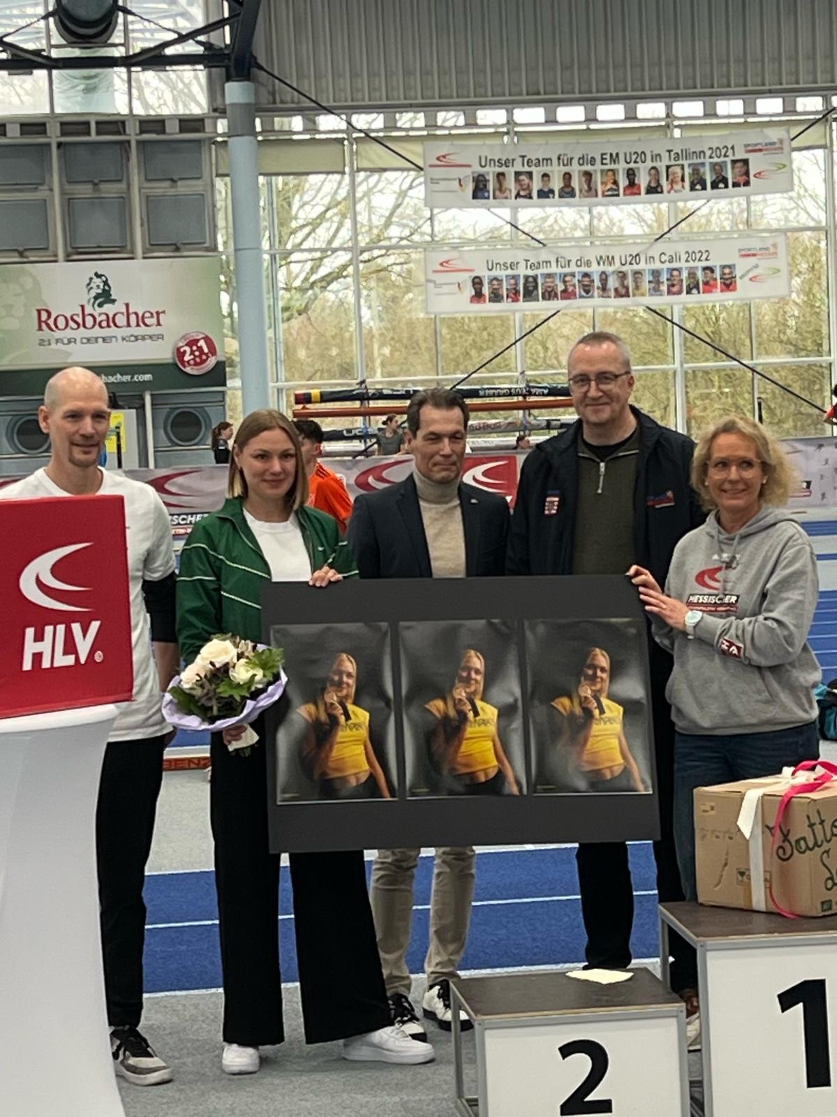 Ein weiteres Highlight: Am Samstag fand nach den 60-m-Vorläufen der weiblichen U18 die Verabschiedung von Lisa Mayer sowie die Ehrung ihres Lebenswerks statt.