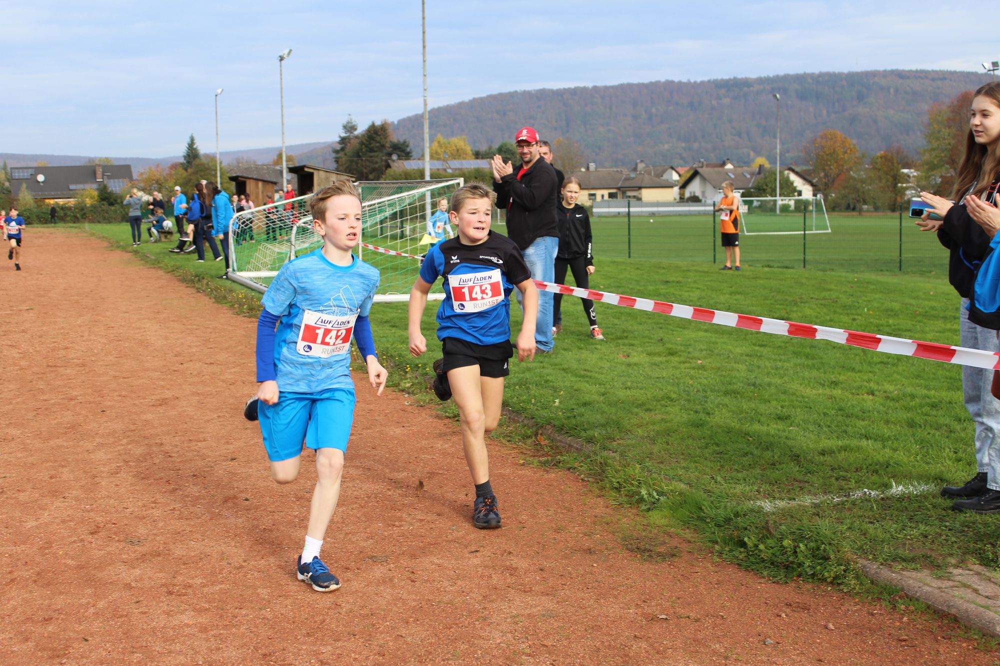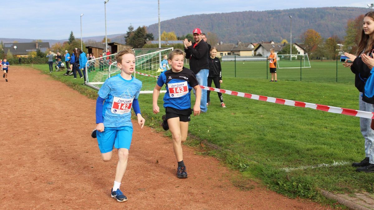 Im 1100 Meter Lauf der M9 über zwei Runden in der Mittelpunkt-Sportanlage fighteten Nick Scharrer und Tim Becker bis zum Ziel am Vereinsheim. Letztlich gewann Scharrer (4:32) hauchdünn den Kreis-Titel vor Becker (4:33). Danach folgte Roland Humburg (alle VfL Wolfhagen, 4:42), der Bronze mit zwölf Sekunden Vorsprung gegen Henry Weiß (SV Espenau) klar gewann.