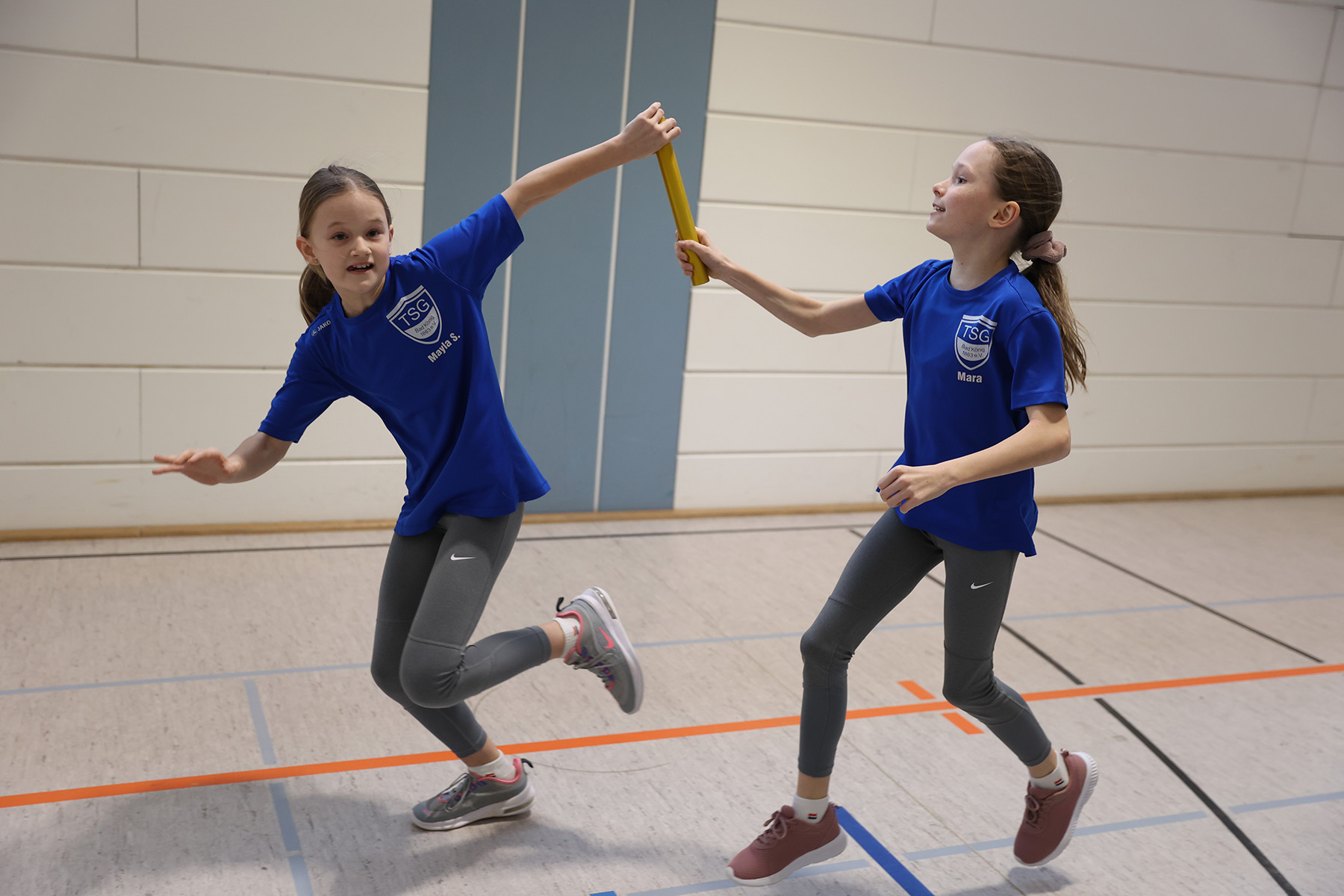 Einen spannenden Zweikampf lieferten sich bei den „Unter-Zehn-Jährigen“ die Gummibärenbande der TSG Bad König (Mia Hallstein, Marie Reeg, Haily Geist, Emma Di Leo Blumenschein, Finn Wiesner, Lena Balles, Felix Wilke, Lara Schäfer, Benedikt Lange, Annika Kittel, Amalia Bielz) und die Flummi-Frösche des TSV Erbach (Mattis Albrecht, Paul Glas, Leni Hamm, Mia Kähsler, Noah Merkel Feliz, Nicklas Peters, Tim Roßmann, Vera Sichwart) . Das Erbacher Team konnte sowohl den 40m-Lauf als auch den Hochweitsprung für sich entscheiden, zeigte aber mit Rang vier im Medizinball-stoßen Schwächen. Die Gummibärenbande belegte in allen Disziplinen den zweiten Rang, so dass sich letztendlich beide Teams mit jeweils sechs Punkten den Gesamtsieg teilten. Auf Rang drei folgte mit acht Punkten die erste Mannschaft des TSV Höchst.