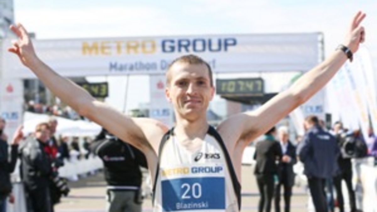 Der gebürtige Pole Blazinski aus dem kleinen Ort Nysa hatte sich bereits im Herbst 2011 entschieden, künftig als deutscher Staatsbürger an den Start zu gehen, seine zwei Pässe machten es möglich. Bei den deutschen Crossmeisterschaften 2012 lief er auf den zweiten Platz, doch sein Lieblingsbetätigungsfeld ist die Marathonstrecke. In Frankfurt erreichte Blazinski 2:18:49 Stunden (2011), vor einem Jahr in Düsseldorf 2:17:19 Stunden, seine Bestzeit (2:15:34) stellte er im vergangenen Herbst beim Warschau-Marathon auf. Eine weitere Steigerung vorausgesetzt, ist er durchaus ein Kandidat für die Weltmeisterschaft in Moskau Ende August. Die Norm des Deutschen Leichtathletik-Verbandes (DLV) beträgt 2:14 Stunden. Doch so weit mag sich Heinig nicht nach vorne wagen. Zum einen fehlt Blazinski noch die Freigabe des polnischen Verbandes, zuvor sind Starts im deutschen Nationaltrikot nicht möglich; zum anderen muss er seine verbesserte Leistungsfähigkeit erst einmal unter Beweis stellen. „Er trainiert hart und gut und hat ein Perspektivpotential von 2:12 Stunden“, sagt Heinig vorsichtig.