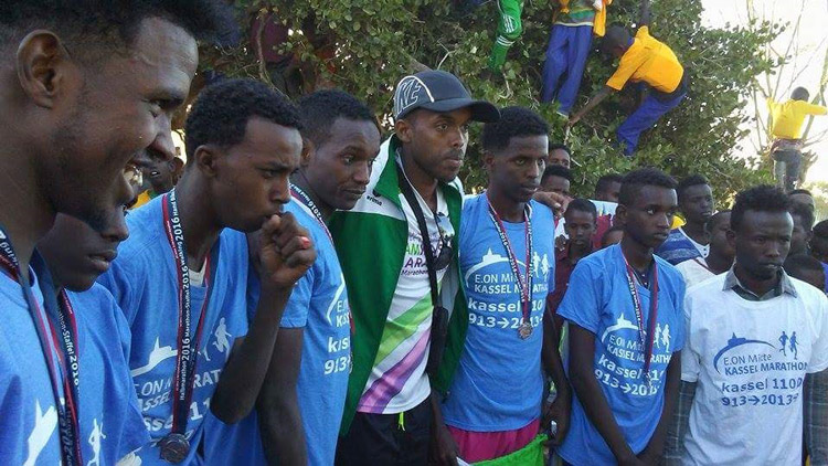 Weil Hassan Jama Ige weiß, wie wichtig der Sport ist, hat er Ende 2017 eine besondere Aktion zur Entwicklungshilfe gemacht. Als er seine Eltern besuchte, die inzwischen in einem großen Auffanglager für somalische Flüchtlinge nahe der Landesgrenze in Äthiopien leben, hatte er Trikots, Medaillen und Läuferbeutel des Kassel-Marathons dabei. Mit seiner GPS-Uhr vermaß er einen 3.000-Meter-Kurs und organisierte einen Lauf für Kinder und Jugendliche. „Es war ein richtiger Wettbewerb, sogar mit Verpflegungsstellen, und sie haben sich alle riesig gefreut über den Lauf und die Spenden aus Kassel“, erzählt Hassan. Viele der Teilnehmer haben ihm versprochen, weiter zu laufen. „Jeder sollte sich ein Ziel setzen, das er erreichen will. Es ist eure Zukunft und ihr müsst die Chancen nutzen, wenn sie sich bieten“, hat er ihnen gesagt. Immer weitermachen, nie die Hoffnung aufgeben. Weil er selbst erfahren hat, was Armut bedeutet, glauben ihm die Jugendlichen. „Sport schützt“, sagt Hassan Jama Ige. Er hat er sich vorgenommen, einige von ihnen in Zukunft persönlich zu fördern oder Partner für eine Unterstützung zu finden.
