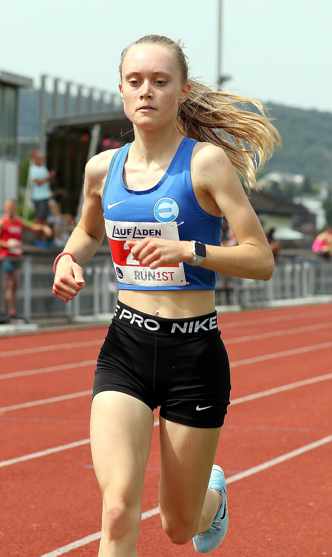 Souverän drehte Nelly Hüther (Eschweger TSV) ihre Runden in 12:00,52 Minuten über 3000 Meter der weiblichen Jugend U 18. „Eine schnellere Zeit war bei der Hitze nicht möglich“, sagte die Rhenanus-Schülerin aus Jestädt.