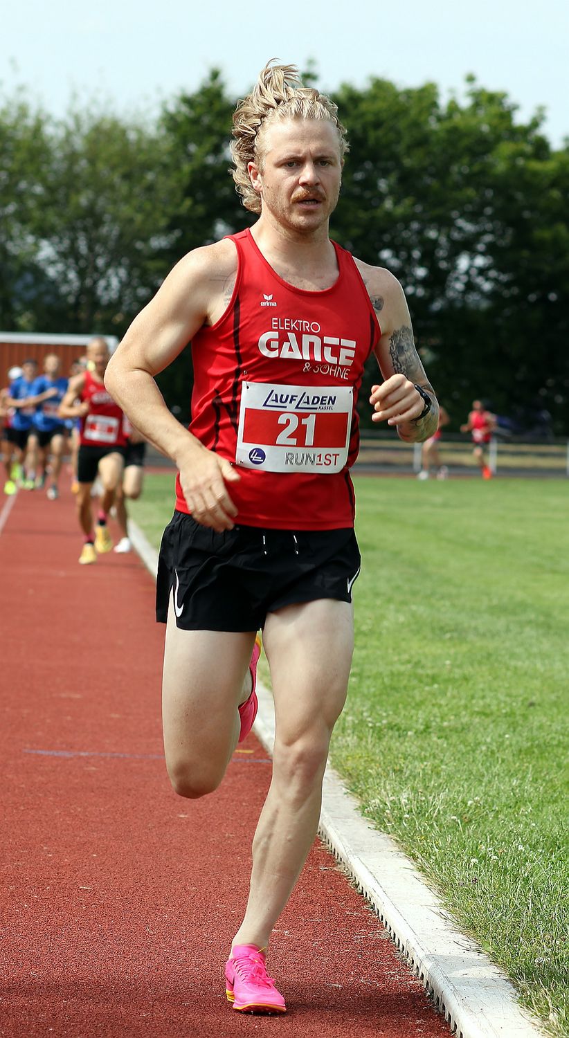 Mit einer souveränen Vorstellung wiederholte Nils Wolkonski über 5000 Meter der Männer seinen Sieg von Bebra 2023. Einmal mehr hatte es der Berufs-Feuerwehrmann besonders eilig und landete in 16:43,49 Minuten mit M 45-Senior Felix Kaiser (17:42,75) sowie mit Jugend-Sieger Max Kleinschmidt (17:42,83) einen dreifachen Erfolg für den TSV Niederelsungen. Dahinter unterboten Kolja Ruhwedel (TSV Obervorschütz/17:46,06) sowie Christian Maß (LC Marathon Rotenburg/18:17,88) und Timo Bach (SC Steinatal/18:19,58) trotz drückender Schwüle ebenfalls locker die 19-Minuten-Grenze.