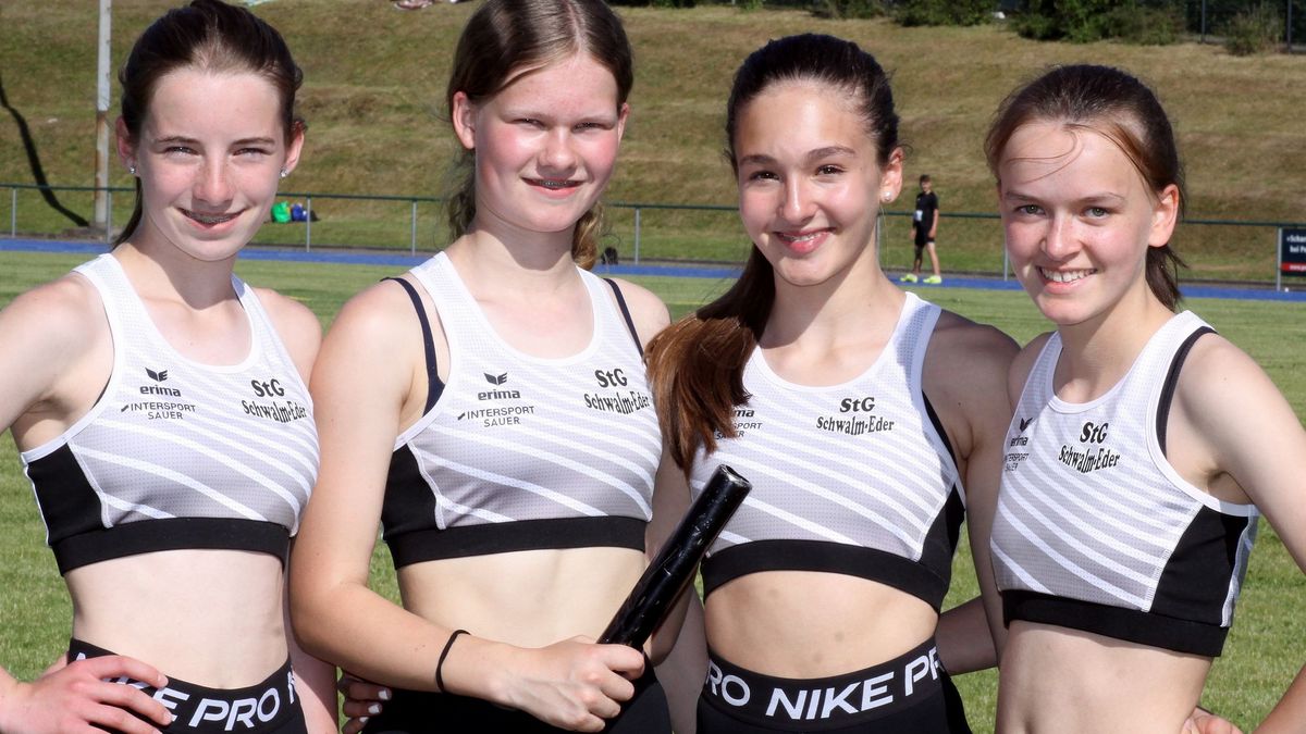 Obersuhl - Schnelle Mädchen des Schwalm-Eder-Kreises standen im Blickpunkt der Nordhessischen Jugend-Meisterschaft der Leichtathleten U 16 und U 14 in Obersuhl. Bereits im Vorlauf über 100 Meter der W 15 deutete Letizia Brunetti (TuSpo Borken) in 13,31 Sekunden ihre Titelambitionen an und distanzierte im Finale in 13,22 Dana Ziegler (SSC Vellmar/13,69 s) um vier Meter. In 13,76 Sekunden wurde Nele Gabriel (LG Gensungen) hier Dritte. Die Grundschnelligkeit der THS-Schülerin aus Wabern war auch die Basis mit weiterhin Jil Rose Salomon, Sophia Fröhlich und Anne Ebener zum Sieg der StG Schwalm-Eder in 54,89 über 4mal 100 Meter vor der vom TSV Remsfeld gestellten zweiten StG-Formation (56,39 s) und der LG Reinhardswald (56,84 s).