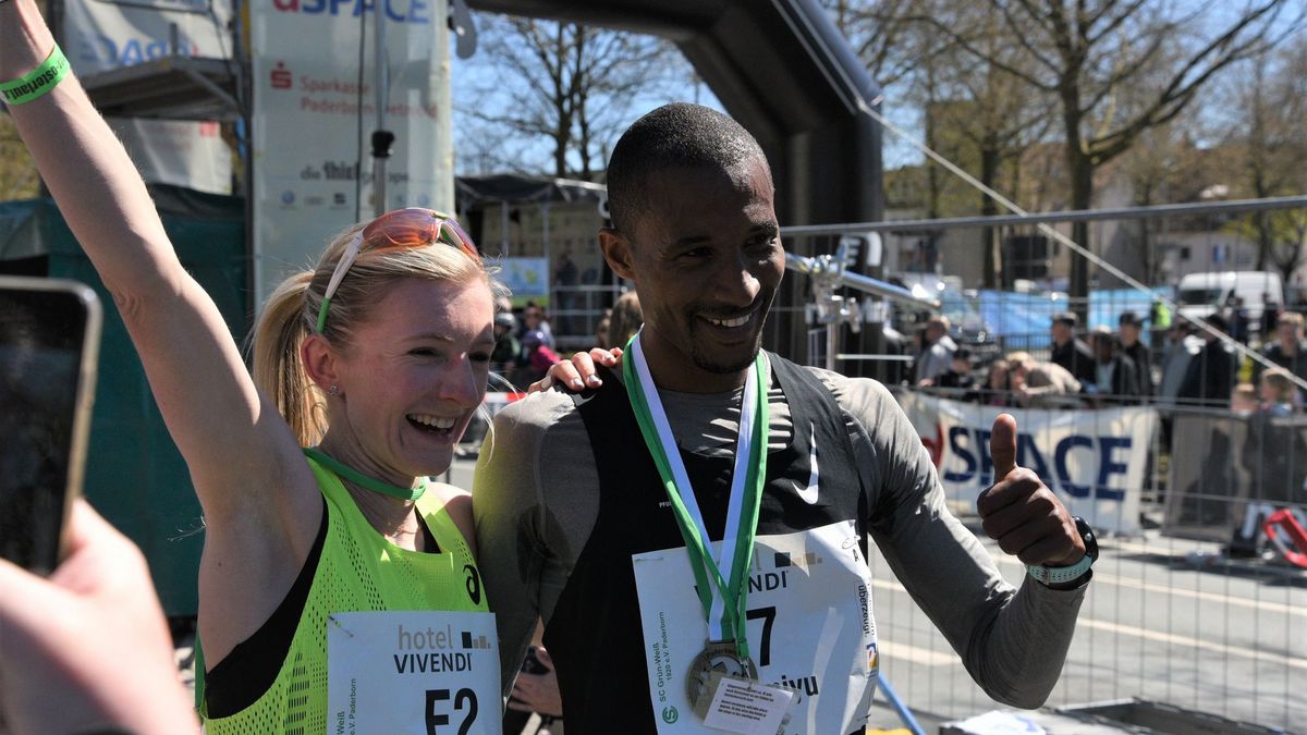 Endlich konnte der Paderborner Osterlauf nach zwei Jahren Coronapause wieder stattfinden und damit an die Tradition anknüpfen. Es war ein Tag mit Bilderbuchwetter, von dem jeder Langstreckler und Organisator träumt. So konnte am Karsamstag der Paderborner Osterlauf als ältester Deutscher Straßenlauf mit mehr als 6.200 Läuferinnen und Läufern in vier Rennen seine 74. Auflage feiern. Bei strahlendem Sonnenschein und fast 15° C gab im Zieleinlauf strahlende Gesichter. Aus deutscher Sicht gab es über 10 Kilometer einen Doppelsieg durch die Frankfurter Marathonspezialistin Katharina Steinruck (Heinig) und durch Homiyu Tesfaye (TSV Pfungstadt). Katharina Steinruck, die erst vor zwei Wochen in Berlin den Halbmarathon in 69:38 Minuten lief und damit erstmals unter 70 Minuten bleiben konnte, nutzte ihre gute Form, um als Siegerin ihre Bestzeit um sechs Sekunden auf 31:53 Minuten zu verbessern. Platz zwei ging an Laura Hottenrot (PSV Grün-Weiß Kassel), die mit schnellen 32:32 Minuten ihre bisher zweitschnellste Zeit lief. Abgerundet wurde der deutsche Erfolg durch die 41-jährige und 45.fachige Deutsche Meisterin Sabrina Mockenhaupt (LV Plietzhausen) auf Platz vier in 33:49 Minuten. Für eine eindrucksvolle Überraschung sorgte bei den Männern der Deutsche 1.500-Meter-Hallenrekordler Homiyu Tesfaye (TSV Pfungstadt). Er ist in Paderborn kein Unbekannter, denn er gewann hier schon 2015 über die 10- Kilometer Distanz in der damaligen Weltjahresbestzeit von 27:54 Minuten. In einem sehenswerten Solorennen alleine gegen die Uhr meldete er sich zurück und überraschte im Ziel mit bemerkenswerten 28:14 Minuten im Ziel. Platz zwei ging mit fast einer Minute Rückstand an den Belgier Sander Vercauteren in 29:09 Minuten. Der Wattenscheider Mitfavorit Amanal Petros konnte nach schlechten Blutwerten nur als Tempomacher unterwegs eingesetzt werden