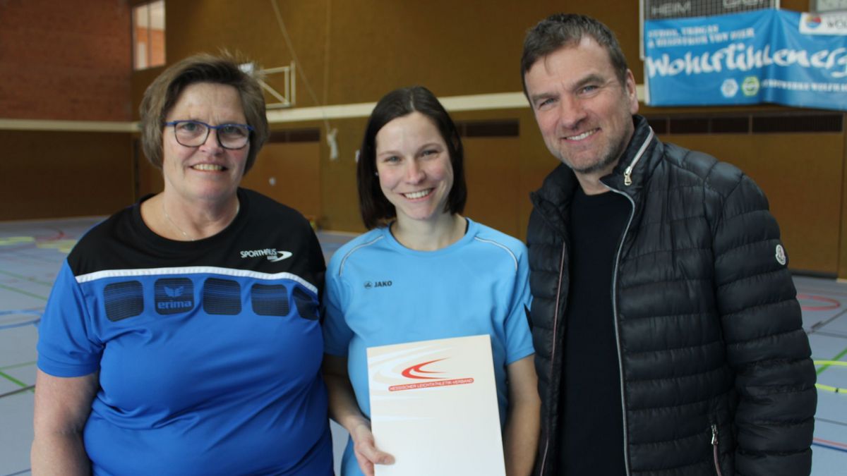 Sehr erfreut zeigte sich auch Trainerin Ulrike Kleinschmidt, dass das ehrenamtliche Engagement ihrer vielköpfigen Trainer- und Betreuerschar auch Anerkennung und Belohnung in Form der Ehrung findet.