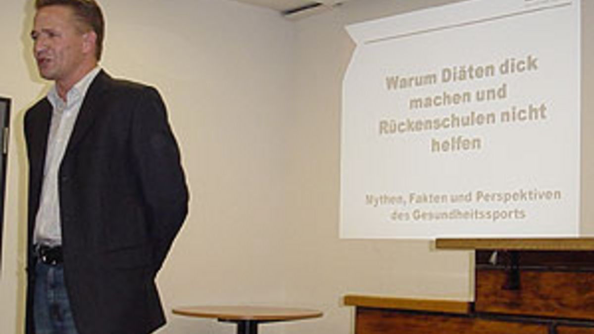 Gerade die kalte Jahreszeit mit ihrem kurzen Tageslicht und den langen Abenden bietet sich für die vielen Lauftreffs im Hessischen Leichtathletik-Verband an, mit etwas Theorie und Praxis die Läuferzeit interessant zu gestalten. Dabei sind, um auch neue Lauftreffler zu gewinnen, gerade etwas provokante Themen geeignet, Interesse an der regelmäßigen gesunden Bewegung zu wecken. So hatte zum Beispiel der Lauftreff ITC Neu-Isenburg mit Jörn Rühl, Referent für Fitness- und Gesundheitssport beim DTB Frankfurt, zu einem Vortragsabend nach Neu-Isenburg in die Sporthalle im Sportpark eingeladen. Jörn, der gemeinsam mit dem HLV auch den letztjährigen Turnfestlauf in Frankfurt organisierte, bescherte mit dem mehr als fragwürdigen Thema „Warum Diäten dick machen und Rückenschulen nicht helfen?“ ein volles Haus. Dabei wurde klar, dass besser nur die regelmäßige Bewegung in Zusammenhang mit ausgewogener, vollwertiger und vor allem nicht zu reichlicher Ernährung hilft, fit und gesund zu werden und zu bleiben. Denn all die Diäten mit dem sogenannten Jojo-Effekt, aber auch die relativ passiven Bewegungen in Rückenschulen helfen wenig, der Todesursache Nr. 1, den Herz- und Kreislauferkrankungen, vorzubeugen. Bewegung ist Leben, das heißt nur körperlich aktive Personen sind im Alltag belastbarer, fühlen sich fit, stärken damit ihr Immunsystem und produzieren so mehr Abwehrzellen. So ist der beste Weg zur Gesundheit immer noch der Geh- oder Radweg statt der Autonutzung und das Treppensteigen statt Fahrstuhlfahren. Sanfte, ausdauernde Bewegung, wie sie gerade bei unseren Lauftreffs mit Walking, Nordic-Walking und Laufen regelmäßig praktiziert wird, hilft auch bei Arthrose und Osteoporose. Natürlich wirken zusätzlich Gymnastik und Muskeltraining besonders auch älteren Menschen zu der Beweglichkeit und Muskelkraft, die Verletzungen durch eventuelle Stürze verhindern oder mindern. Leider leben die meisten von uns heute in einer verkehrten Welt mit zu wenig Bewegung und zu guter Ernährung. Keine Zeit? Die Ausrede gilt nicht um gesunde Bewegung in seinen Tagesablauf einzubauen und so den Kampf mit Fettleibigkeit und Muskelschwäche aufzunehmen. Mit eindrucksvollen Schaubildern und anschließenden praktischen Koordinationsübungen in der Sporthalle ging ein lehrreicher Abend zu Ende, der zum Nachahmen aufforderte. Dabei können z. B. auch die Themen der Grundausbildung oder Fortbildung Lauftreffbetreuer des HLV verwendet werden, die in diesem Jahr wieder an mehreren Terminen stattfinden. Näheres bzw. Anmeldung unter www.hlv.de unter Breitensport, Aus- und Fortbildung. Christian Andersch Pressesprecher Breitensport