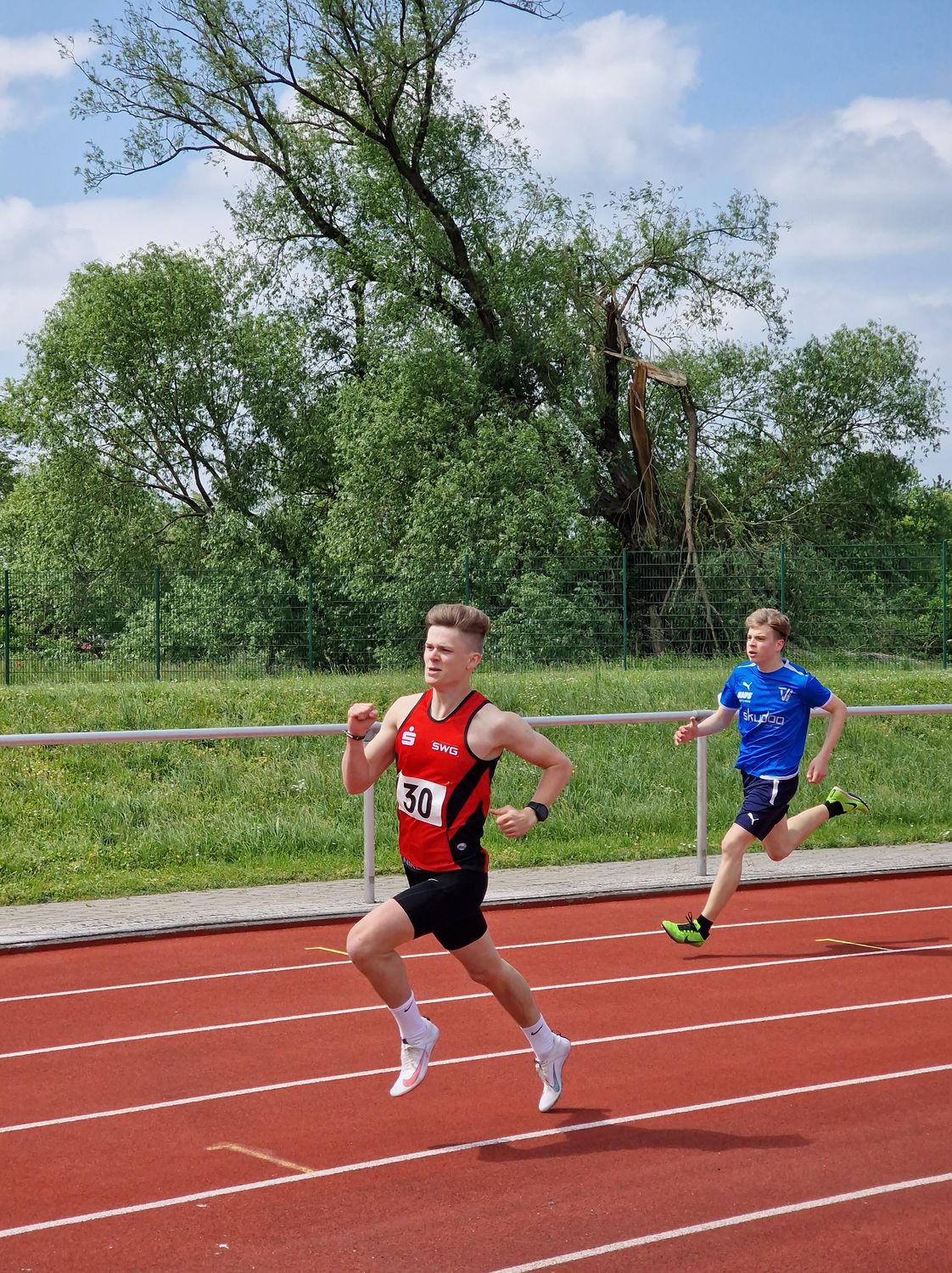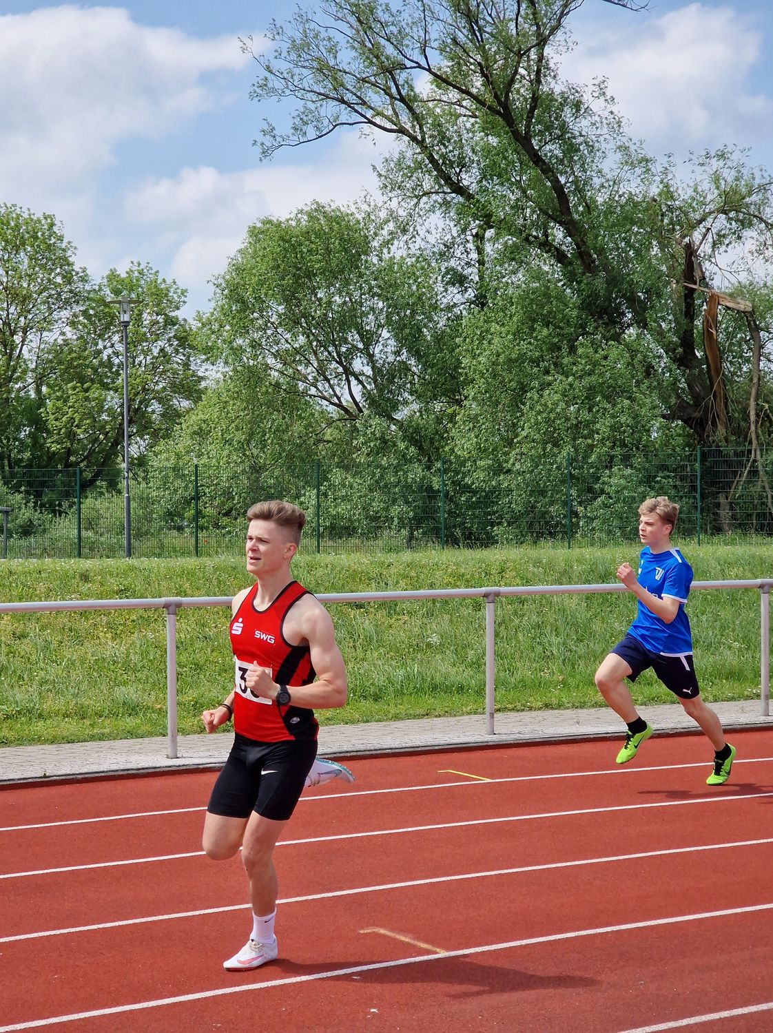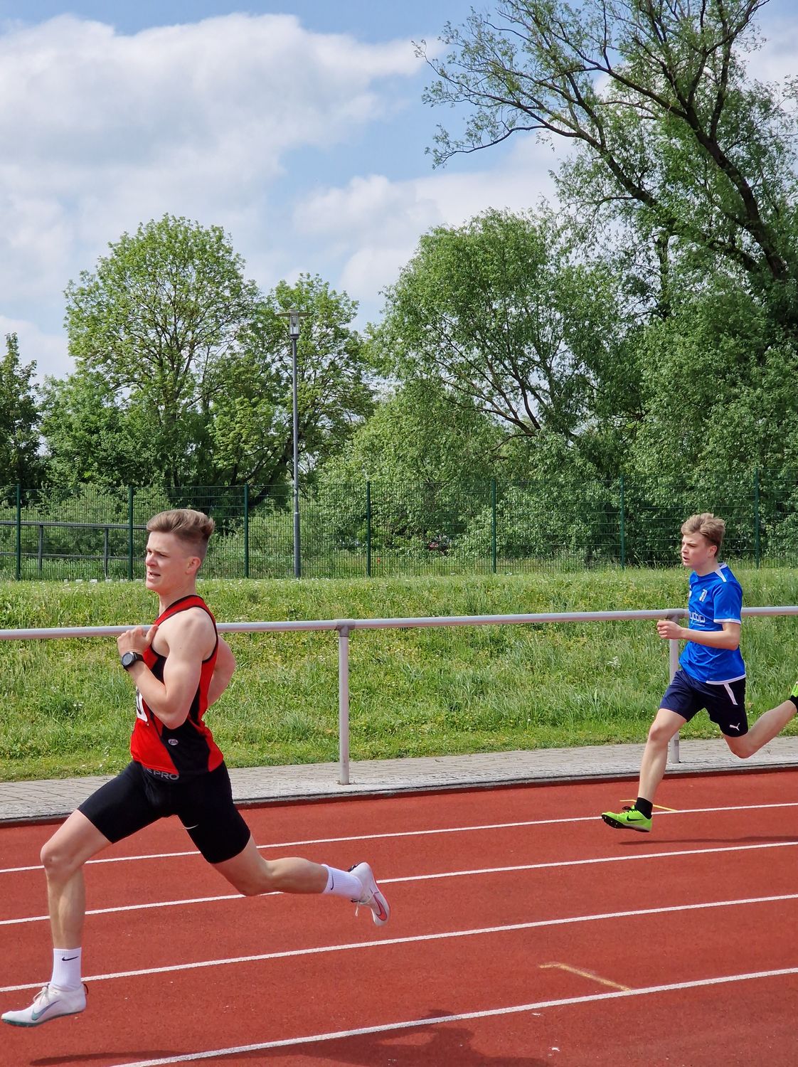 Je älter die Athleten in den Jugenden, umso dünner wurden auch die Teilnehmerfelder. Besonders herausgezeichnet hat sich das auch in der männlichen U20 – hier liefen über 800 Meter lediglich zwei Athleten, der Burgsolmser Abdulnahman Alsheikh sicherte sich den Regionsmeistertitel mit einer soliden Zielzeit von 2:11,34min. Sein Vereinskollege Kilian Patzelt bestritt kurze Zeit darauf die 400 Meter Stadionrunde und sicherte sich mit 55,19s den zweiten Rang.