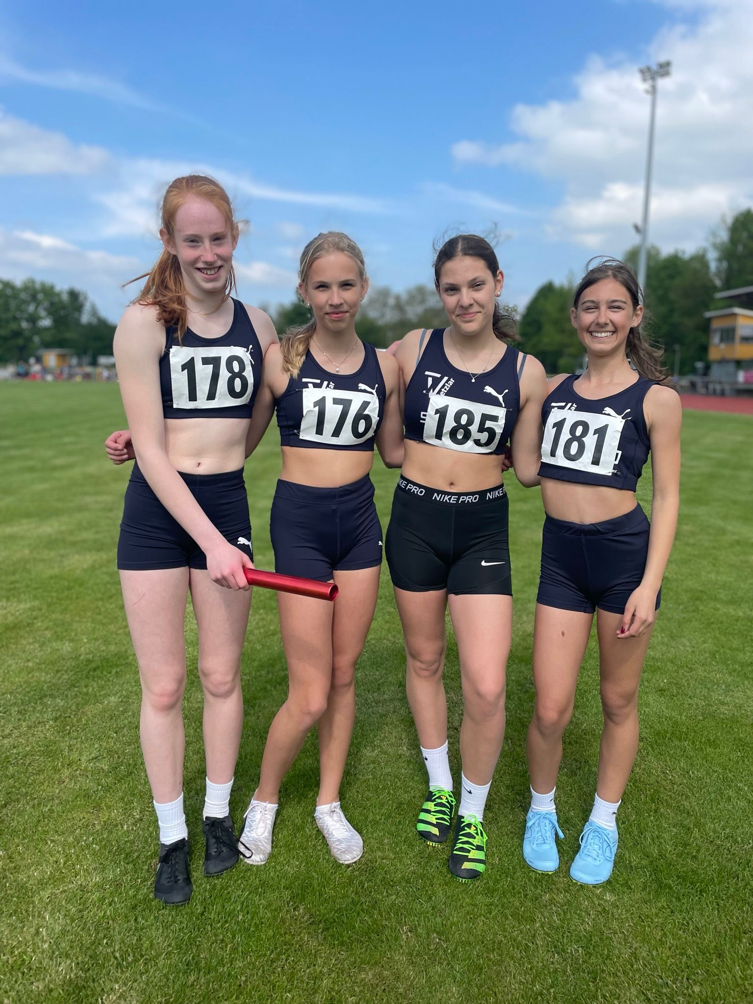 Die weibliche Jugend U16 hatte erfreulicherweise ganze fünf antretende 4x100 Meter Staffeln gemeldet, wobei die Mädels vom TV Wetzlar den zweiten Rang hinter der LG Wettenberg eingefahren haben. Nach ihrem Fauxpas bei den Hessischen Meisterschaften zwei Tage zuvor hat die Staffel aus Dück, Neumann, Schleiter und Mariella Hein mit 54,17s eine solide Zeit aufgestellt.