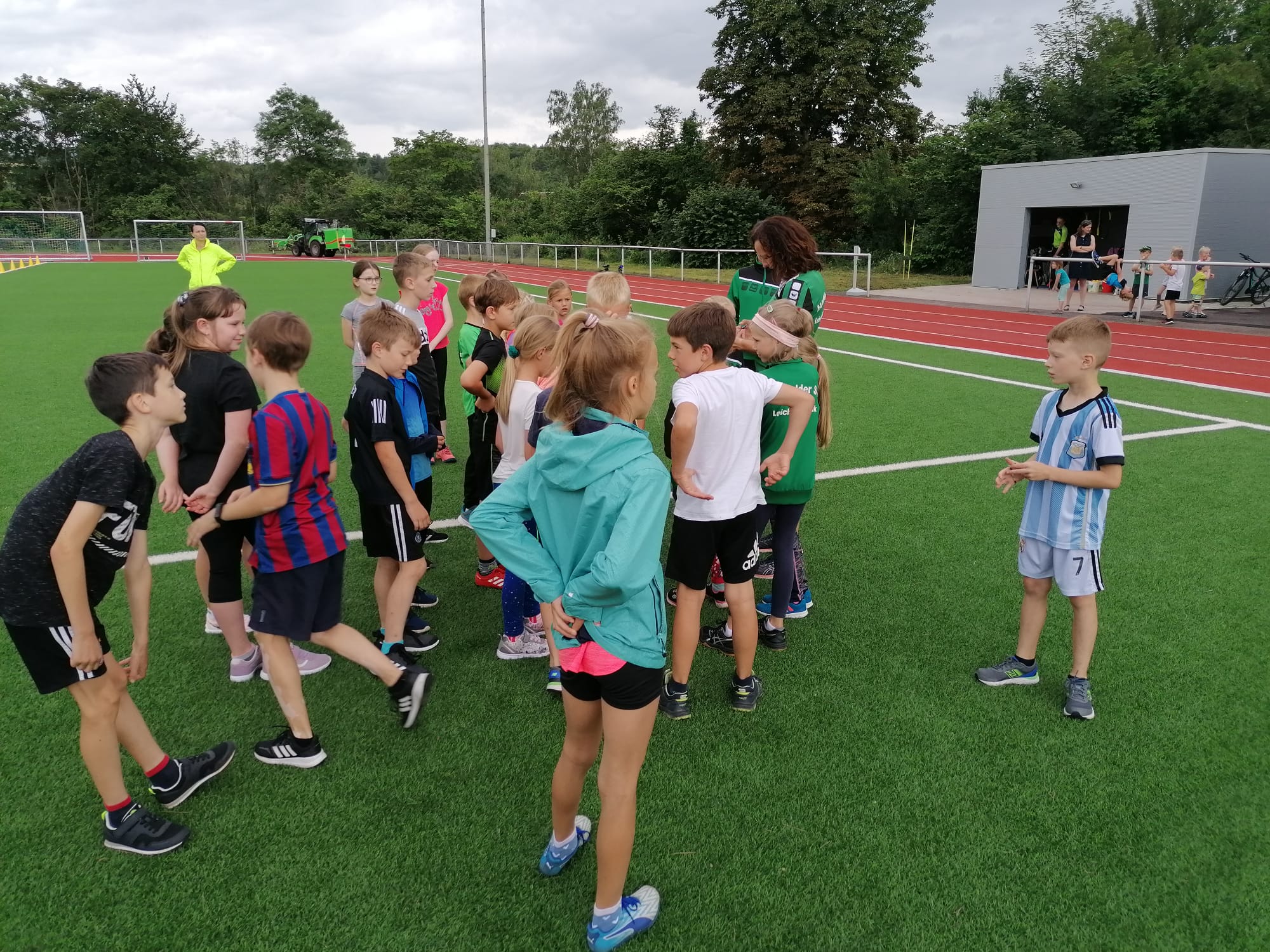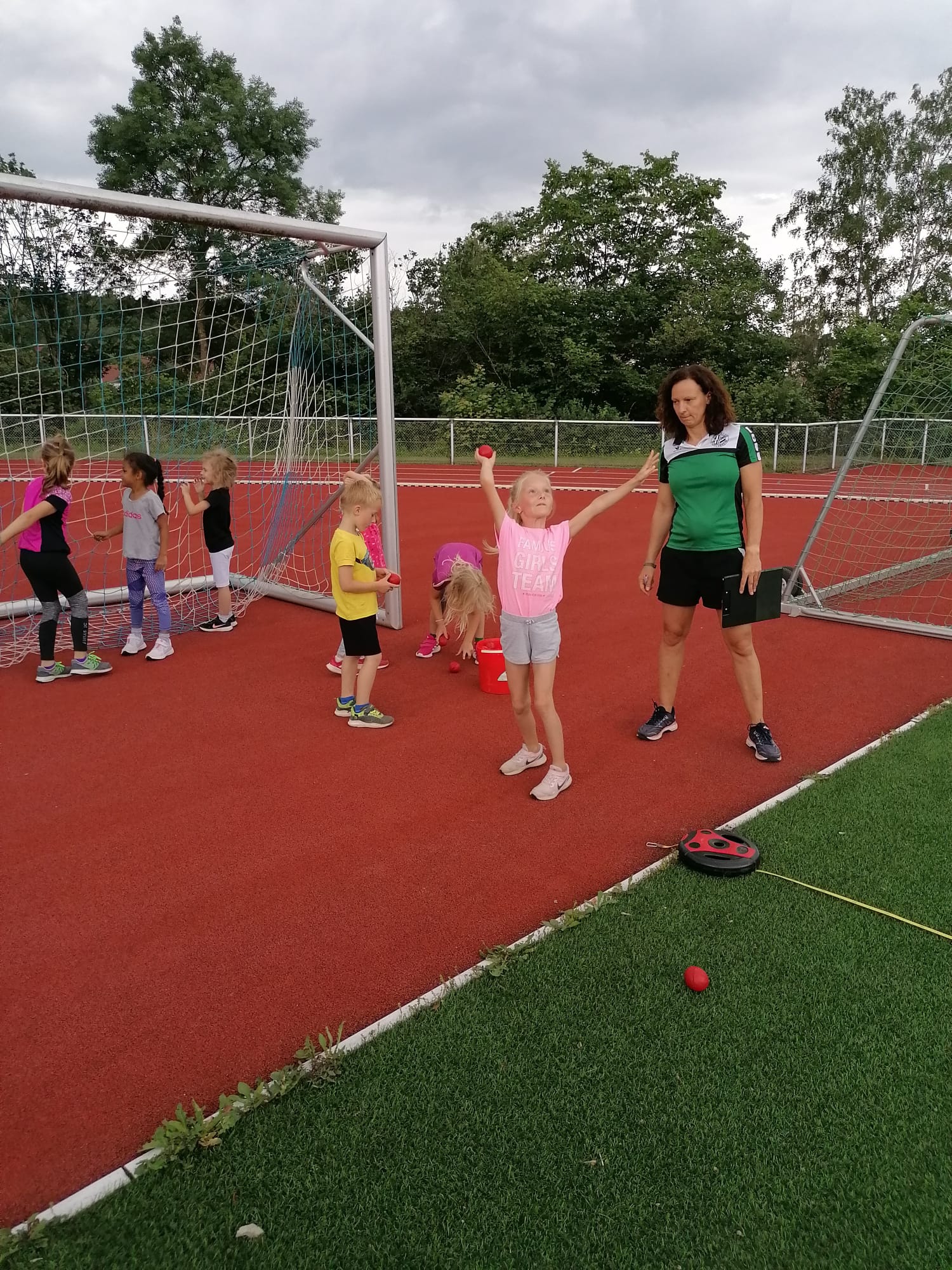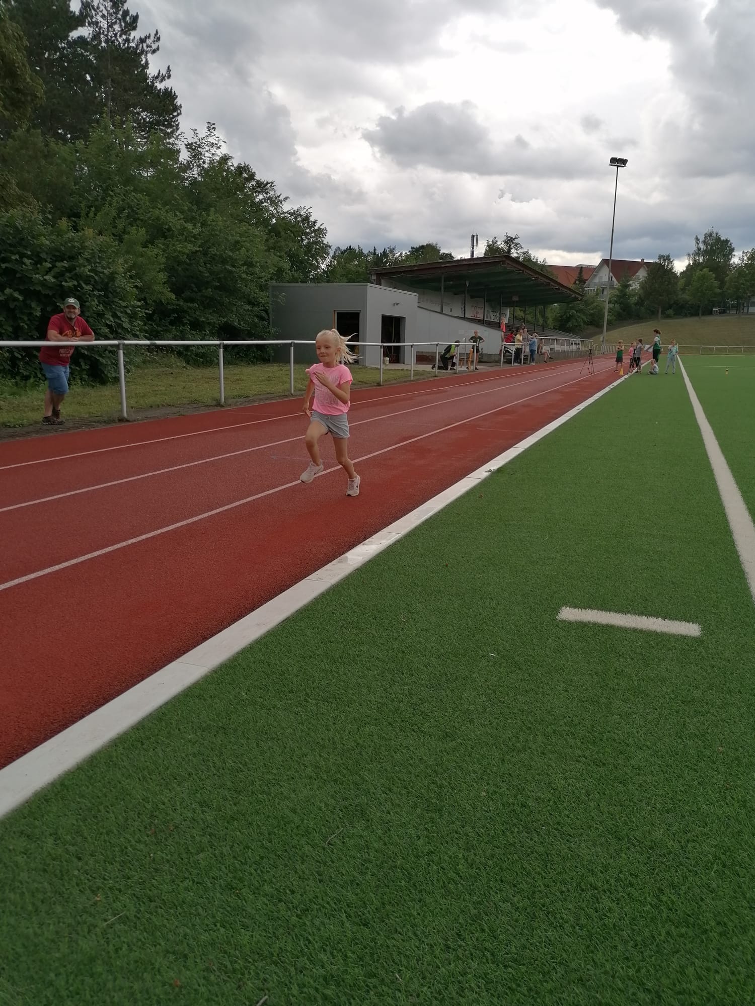 Und die ersten die die grundgereinigte Tartanbahn nutzten waren unsere Jüngsten! Mit Wettkämpfen sieht es gerade in unserer Region sehr mau aus; gibt es bisher nichts. Wann immer möglich gehen unsere Athleten zu Wettkämpfen auf die Reise. Dem sind aber auch rein logistisch gesehen Grenzen gesetzt. Um auch aktuell etwas Wettkampffeeling aufkommen zu lassen haben wir das Ablegen des Sportabzeichens ins Kinderleichtathletik-Trainingsprogramm integriert. Und das macht unseren Kindern in der Kinderleichtathletik (bis 11 Jahre) sichtlich Spaß. Die „Älteren“ Athleten folgen in Kürze.